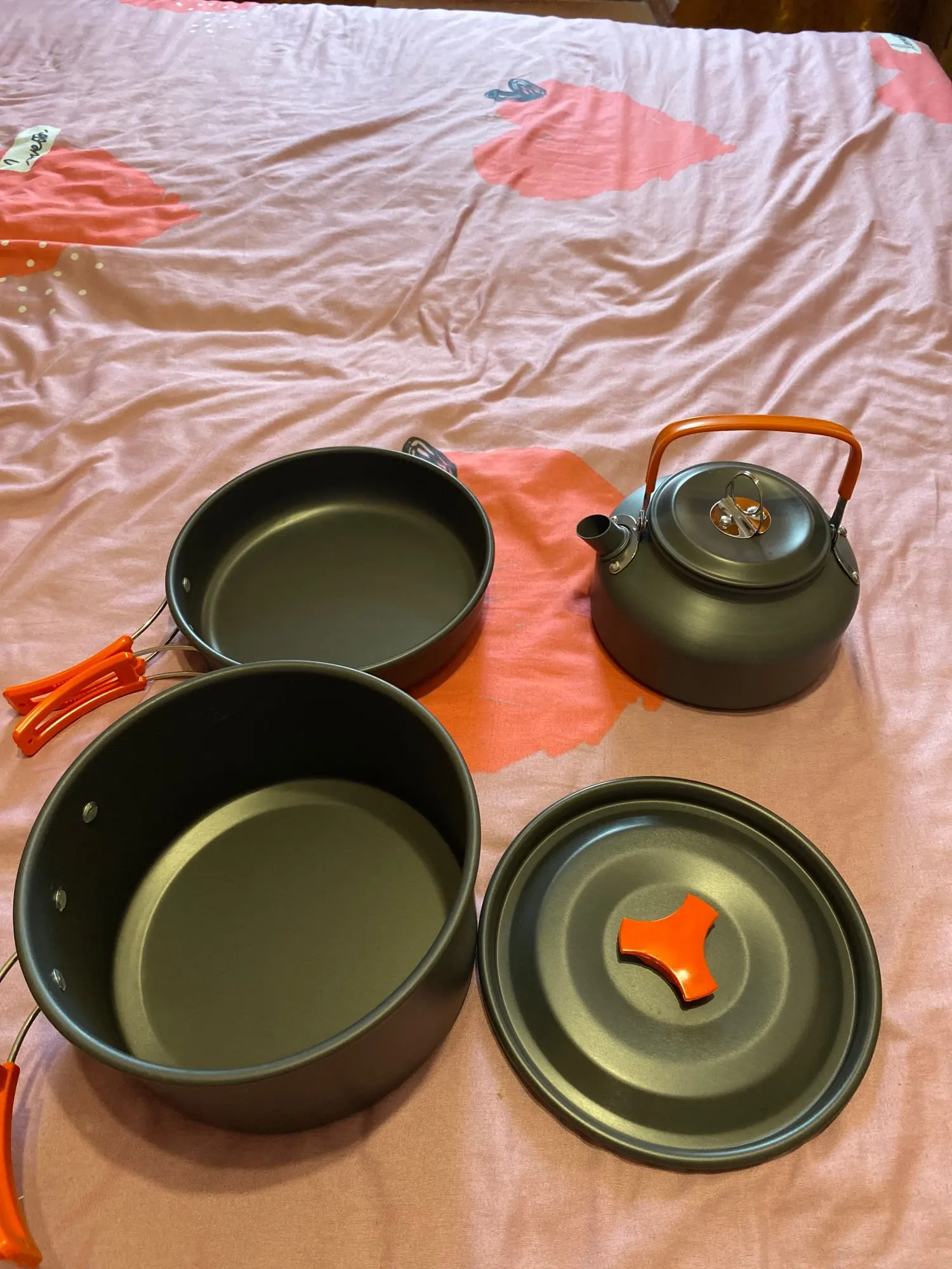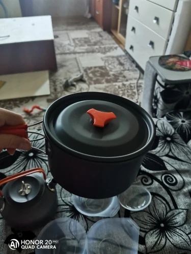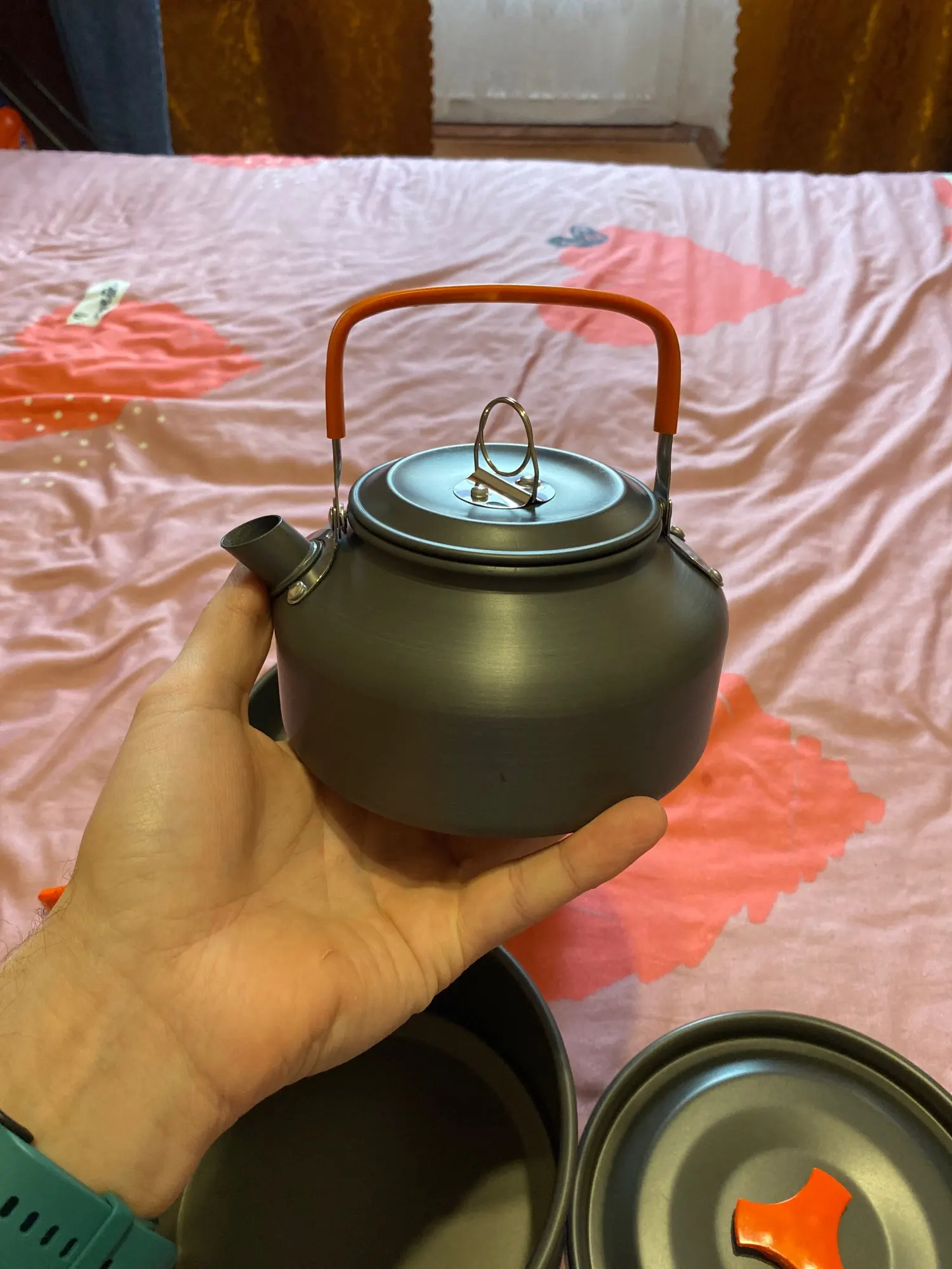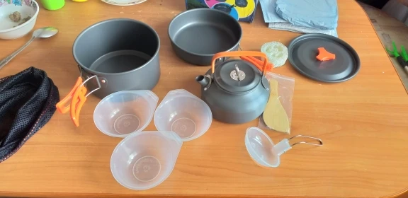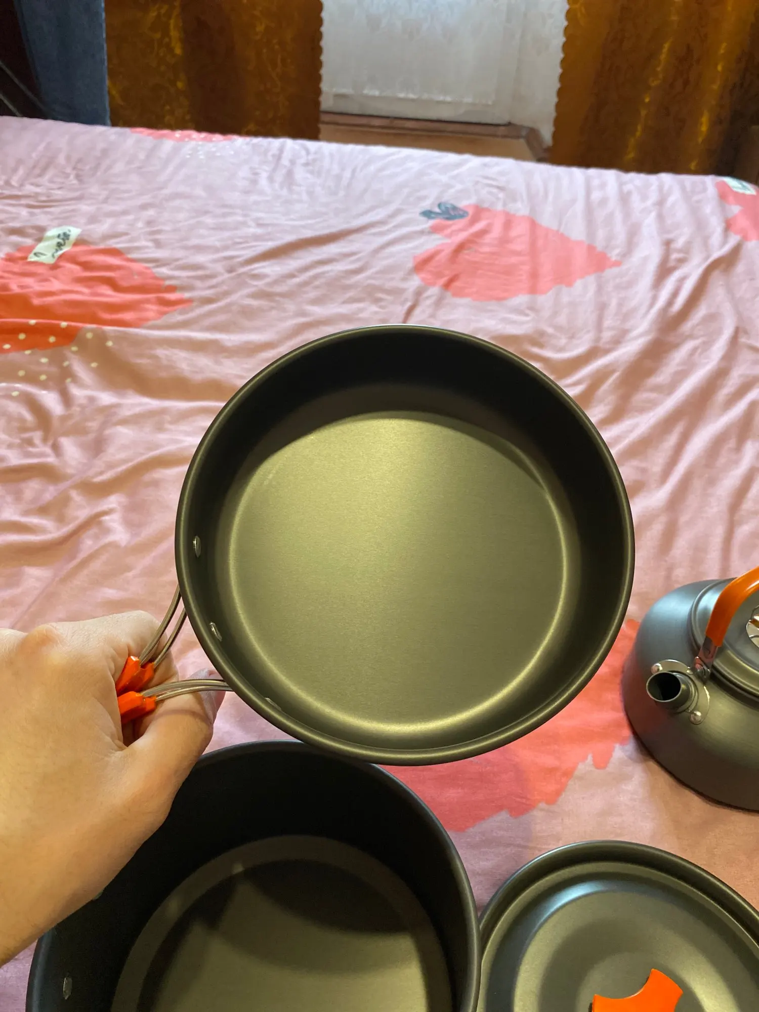 отличный набор, лёгкий, компактный, удобная сумка для хранения. Пока довелось попользоваться только сковородкой и чайником, в сковороду влезает яйцо и пару сосисок, при полном заполнении чайника получается 2 больные 300мл кружки горячей воды, закипает он за 4 минуты при среднем огне газовой плитки. Доставка быстрая, продавца рекомендую5757 u. 18 июня 2022