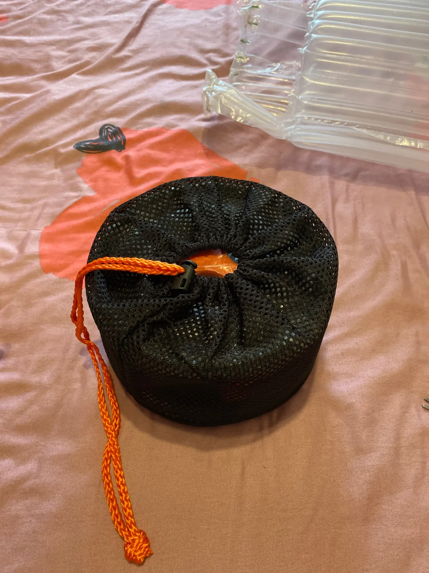 3. Плиту и ручку кастрюли можно сложить для экономии места, а все предметы в кухонном устройстве можно хранить вместе в сетчатой сумке для удобной переноски.