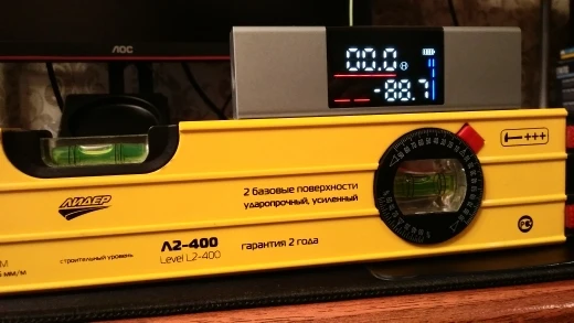 Плюсы: 1) Прибор симпатичный, приятно взять в руки. 2) В моем случае, более-менее, адекватно указывает наклон. Минусы: 1) Лазеры светят под углом к продольной оси прибора (см. фото). 2) Штатив абсолютно бесполезен, так как кулак (головка) штатива поворачивается только в одной плоскости, а должна поворачиваться минимум в двух, а по-нормальному - во всех плоскостях. 3) Продавец обо всем прекрасно знает, но доказывает, что так и должно быть. 4) Отправил товар в последний день перед автоматическим закрытием заказа. 5) Очень плохо был упакован. Коробка в хлам, но прибор, чудом, выжил... P.S. Открыл спор, предложил возврат. Продавец отказался принимать товар и предложил к возврату 0 руб.(!). После фото и видео доказательств, АлиЭкспресс решил спор в мою пользу.