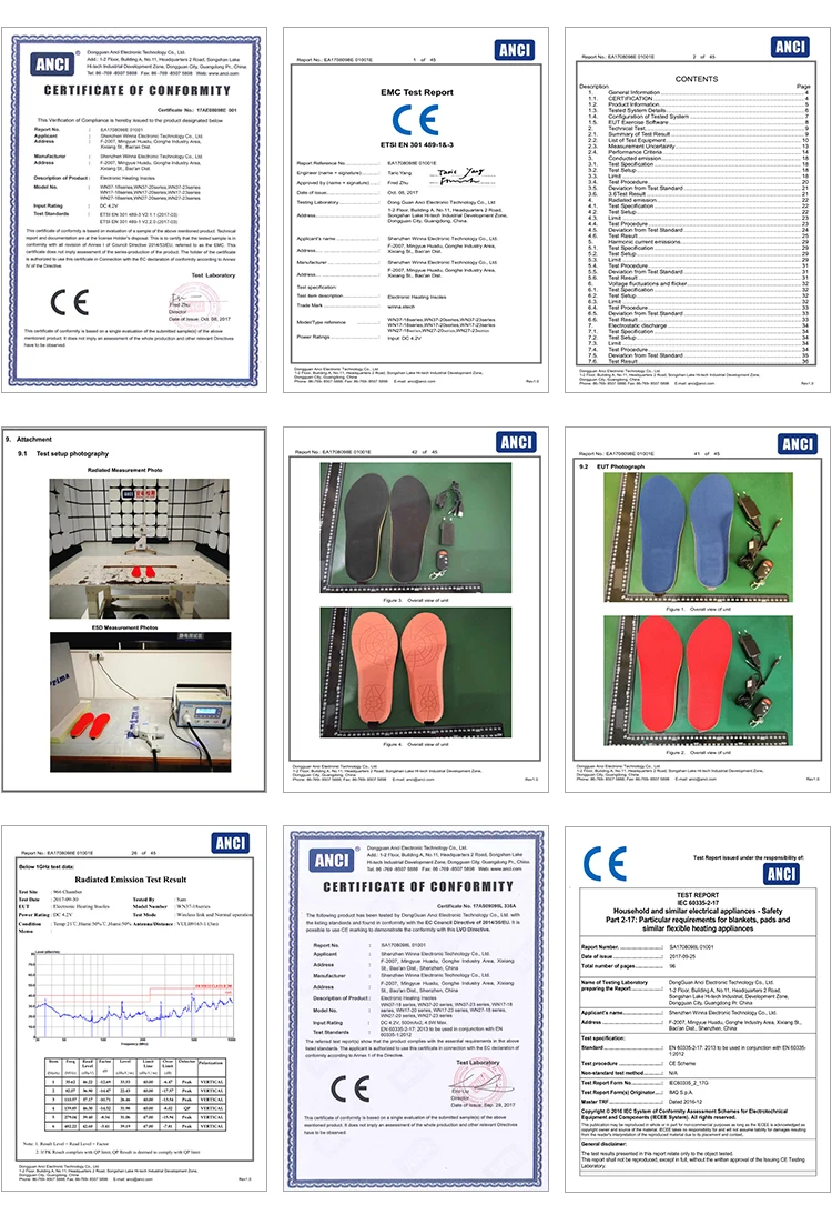 CE, RoHS, GS, UL, PSE одобрены, все наши нагревательные стельки поставляются с 12 месячными гарантиями.