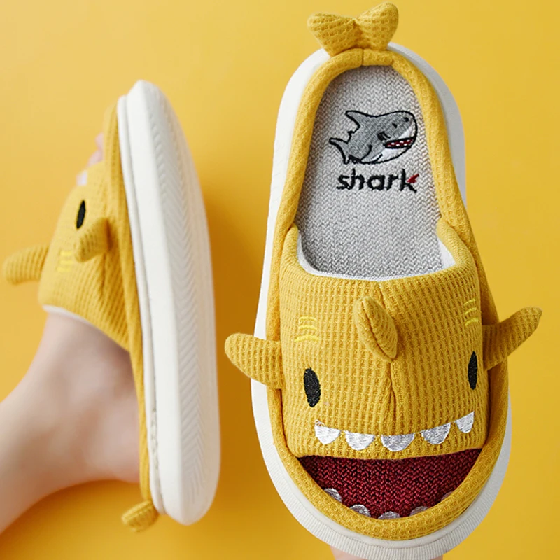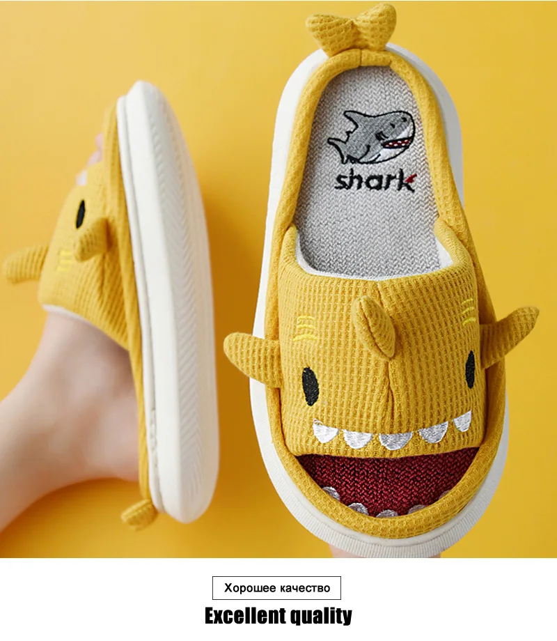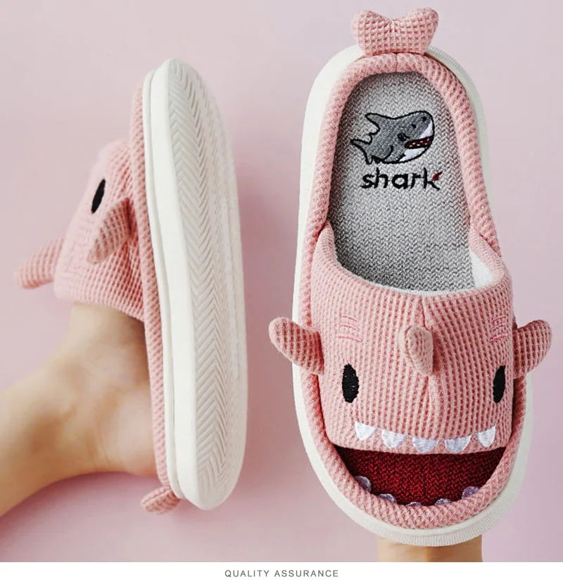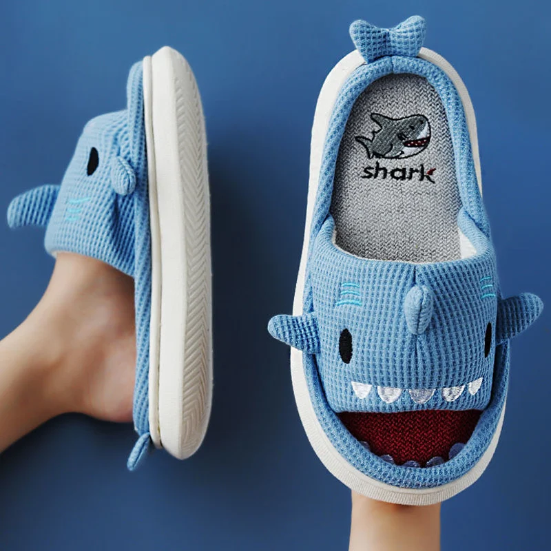 Женские домашние тапочки на платформе; Высококачественные мягкие тапочки «акулы»; Домашние тапочки на плоской подошве для девочек; Домашняя обувь для мальчиков и девочек