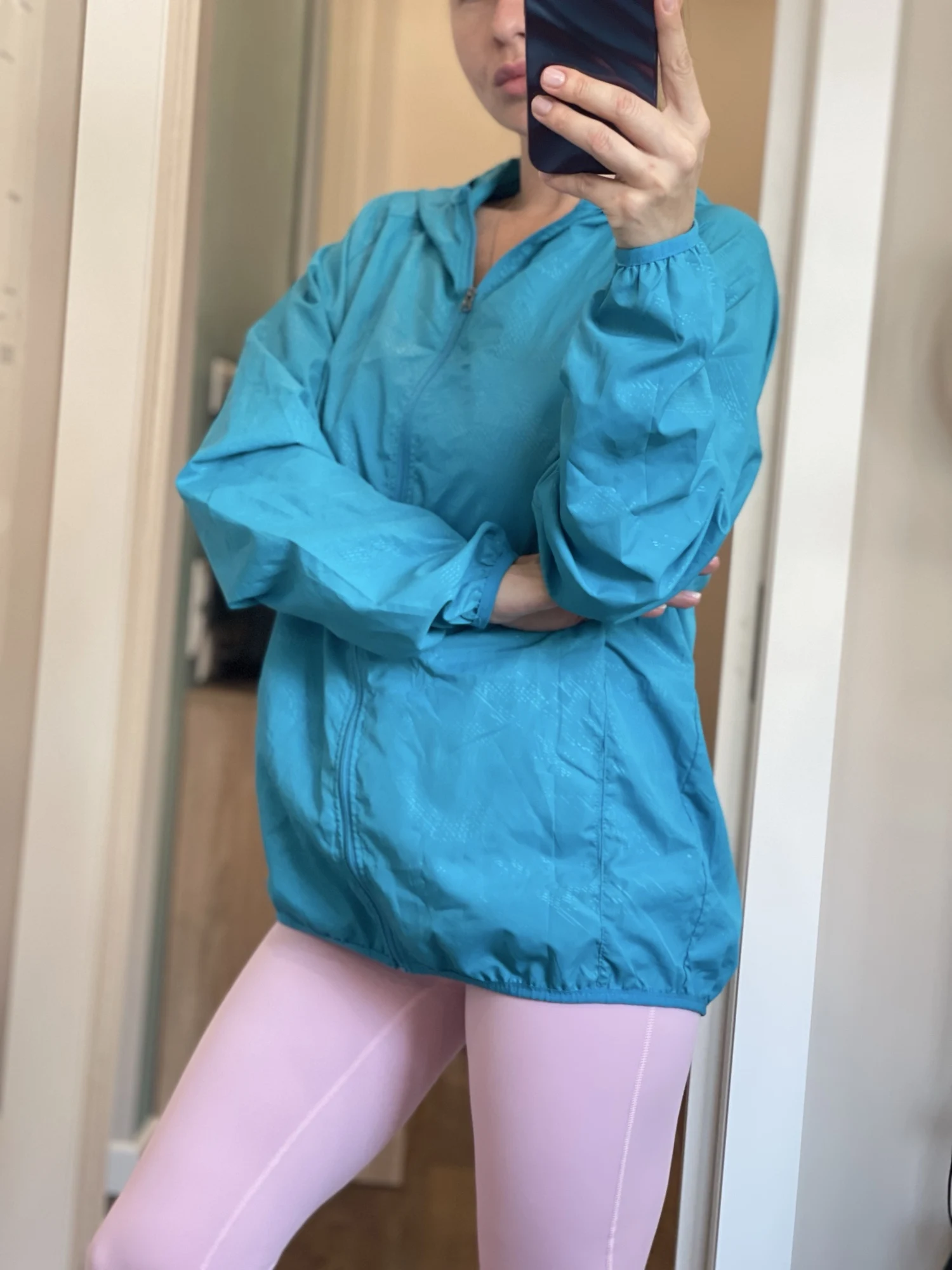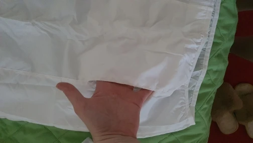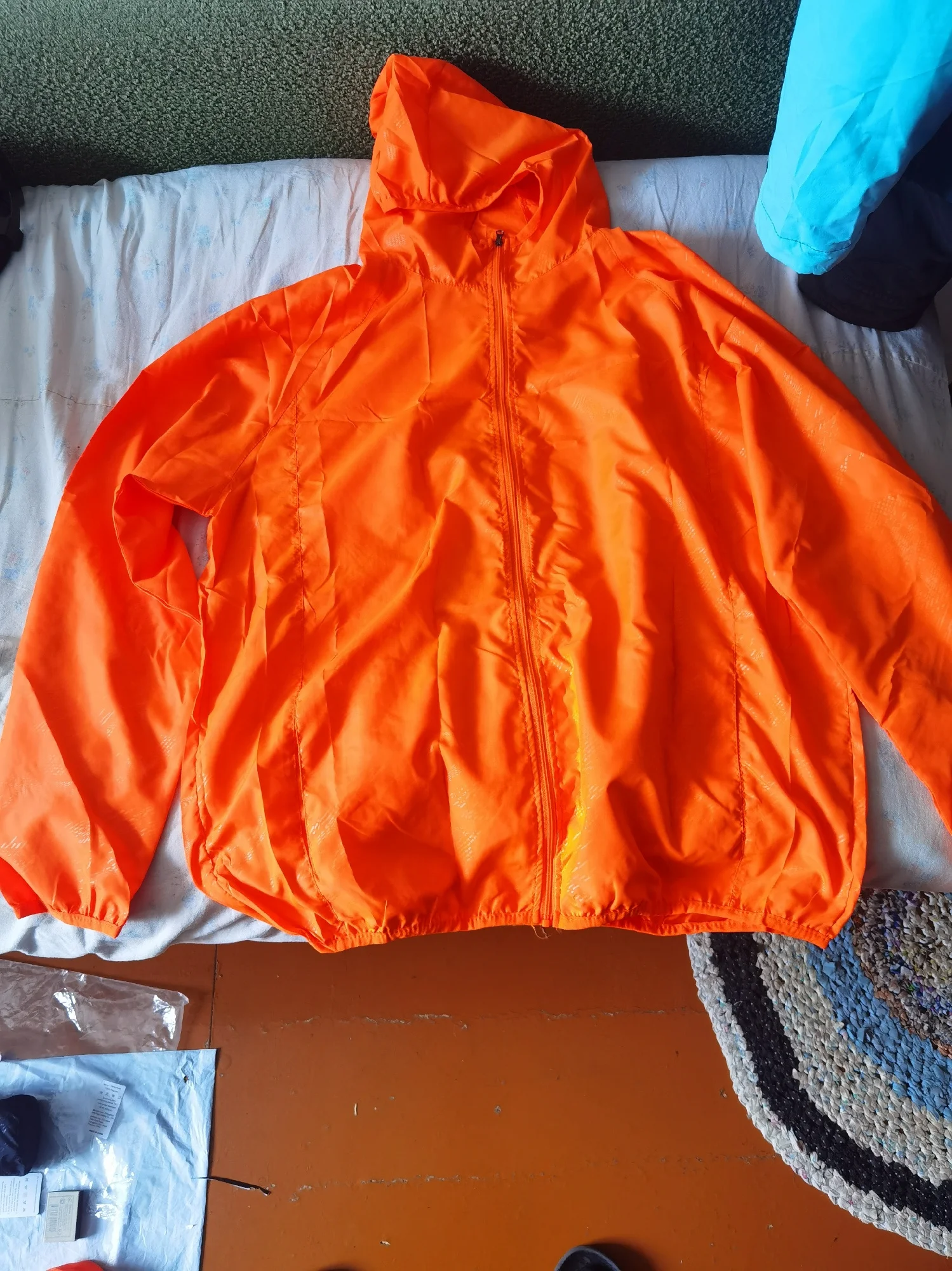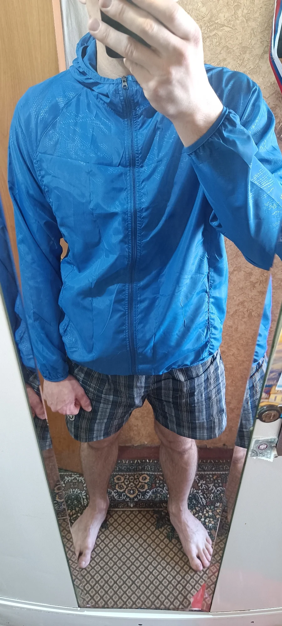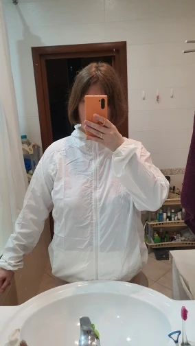 Доставка 3недели сдэк,считаю быстро. Розовый легкий конверт. открываешь,там куртка в чехле, размер с крупную ладонь. Чисто белая,полосок,вкраплений как на фото/других магазинах/отзывах не заметила. карманы, эластичные края,капюшон, замок. Сделана очень качественно. под кран ставила,вода скатывается. размер совпадает с таблицей 4х-121см сверху, низ поуже. можно было даже 3х взять, под футболку много не надо,но боялась маломерки. Расчитана на высокий рост. длинная и рукава тоже. можно подвернуть. брала маме на ог104. но мне на ог106/рост175см подошло. душноватая в доме,не знаю как на улице. думаю на ветерок или летний дождь сгодится, для этого и брали. не успела на 2 дня до отпуска прийти, поэтому мамой пока не протестировано,а я чисто для отчёта примерила. не жалею,что купила именно здесь за 493₽ хотя были варианты с кучей продаж за 280-350. думаю ещё зеленую заказать.