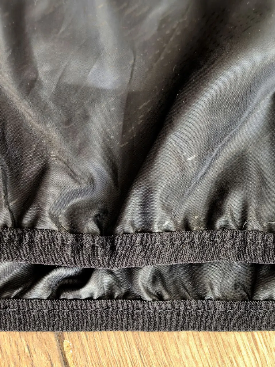 На свои параметры 110/86/99 см, рост 177 см, вес 78 кг заказал ветровку в размере XXL в черном цвете. Ориентировался на таблицу размеров продавца - размер подошел, ветровка села отлично. Состав: в карточке товара указан 100% нейлон - это неверный состав. На самой ветровке 100% терилен. Такая ткань обладает следующими свойствами: устойчивость к износу, к влаге, к химическим веществам, антибактериальность, не растяжимость. Поверхность терилена с лёгким блеском. Пошив нормальный. Есть небольшое количество торчащих ниток, но не критично. Швы ровные. Рукава и нижний край обшиты тесьмой. Она хорошо тянется и плотно прилегает к телу. Так как, покупал эту ветровку в качестве дождевика, первым делом проверил ее экспериментальным путем в душе, предварительно одев футболку. Ткань абсолютно непромокаемая - голова и майка остались сухими, за исключением области молнии. Только в этом месте майка незначительно промокла. Причина этого в том, что молния никак не защищена от влаги. Высохла ветровка моментально. За свою цену ветровка великолепна - легкая, тонкая, удобная и ей не страшны никакие дожди. Я доволен! Рекомендую!