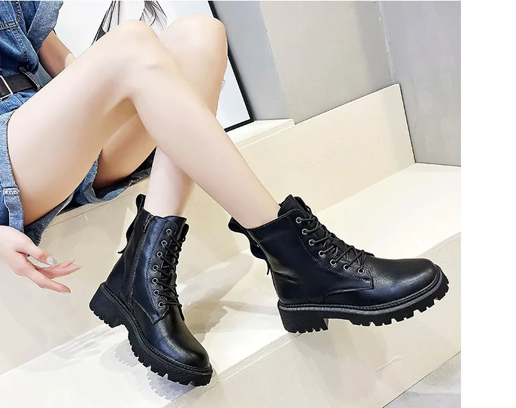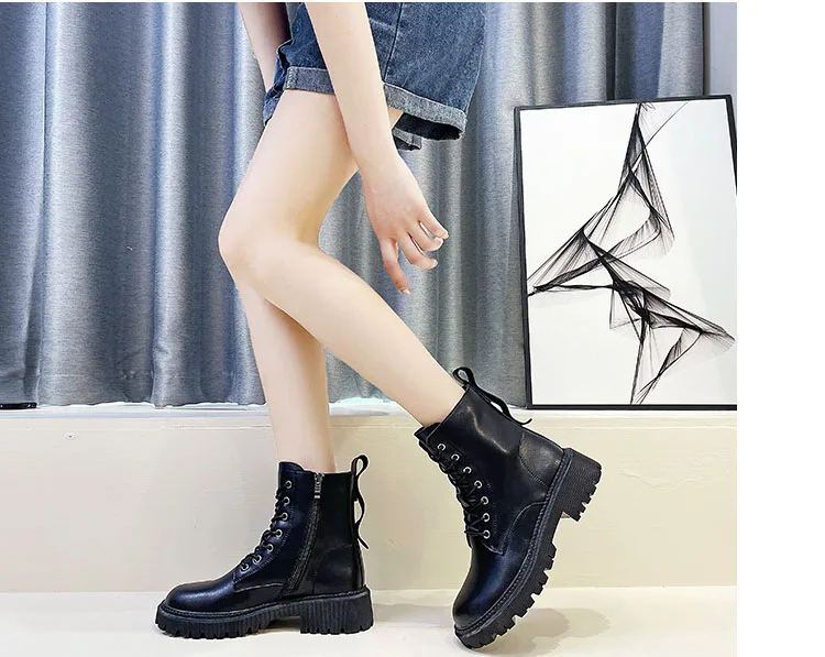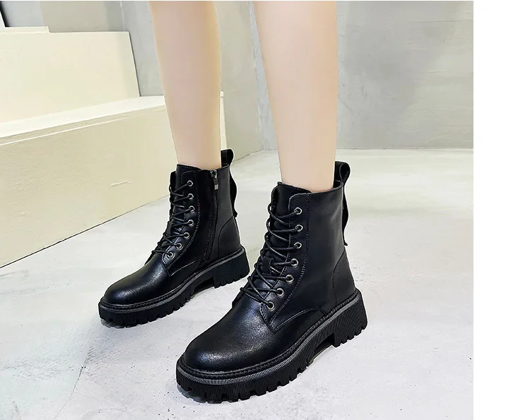 Женские ботинки-мартинсы CXJYWMJL из натуральной кожи, зимние ботинки на платформе в британском стиле, ботинки на молнии для мотоцикла