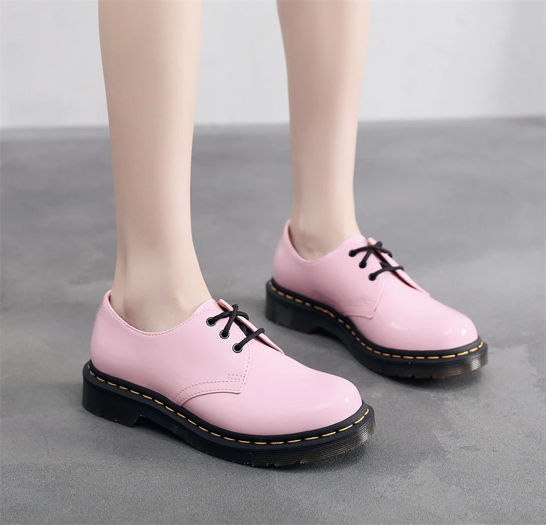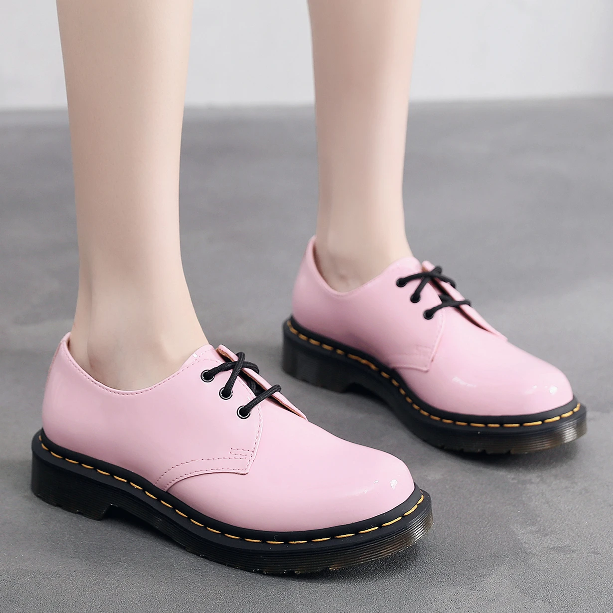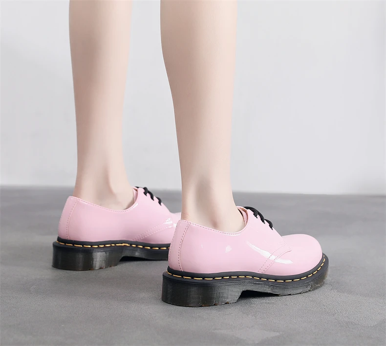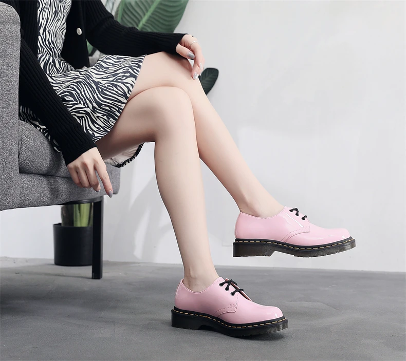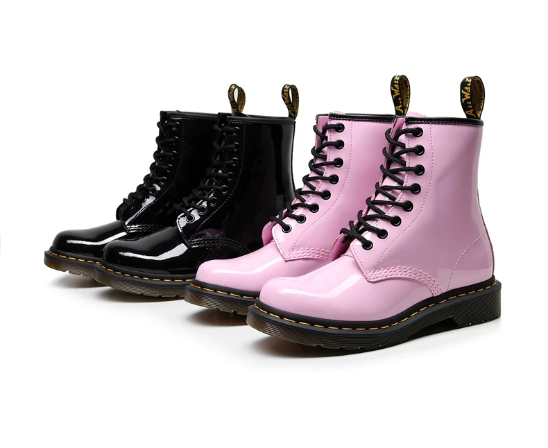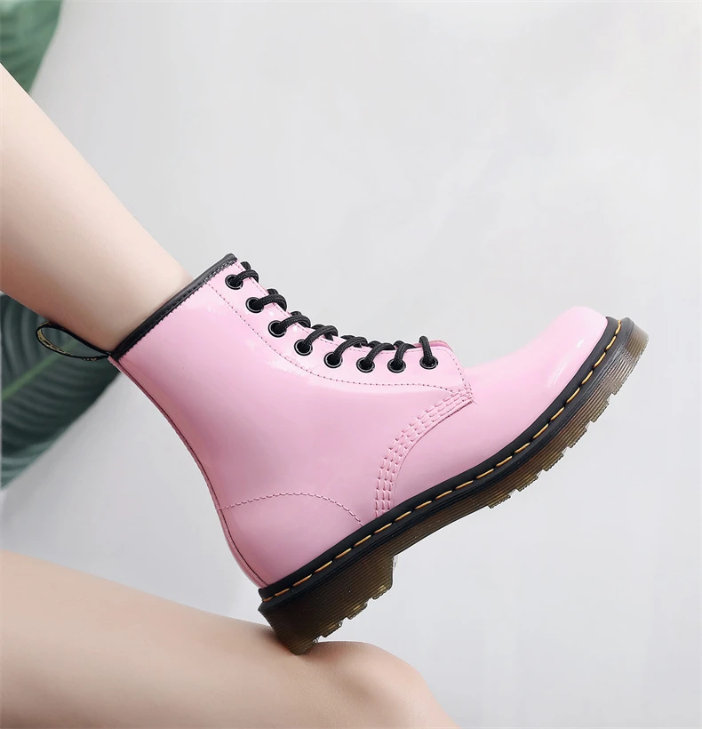 Новые зимние розовые сексуальные женские сапоги кожаная обувь с высоким верхом повседневная обувь на толстой подошве мартинсы Большие размеры женская обувь для врачей
