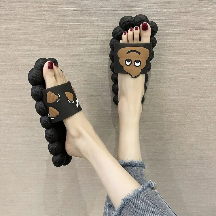 Массажные тапочки женские, Мягкие Шлепанцы с пузырьками, на плоской подошве, Нескользящие, мультяшный рисунок, домашние тапочки