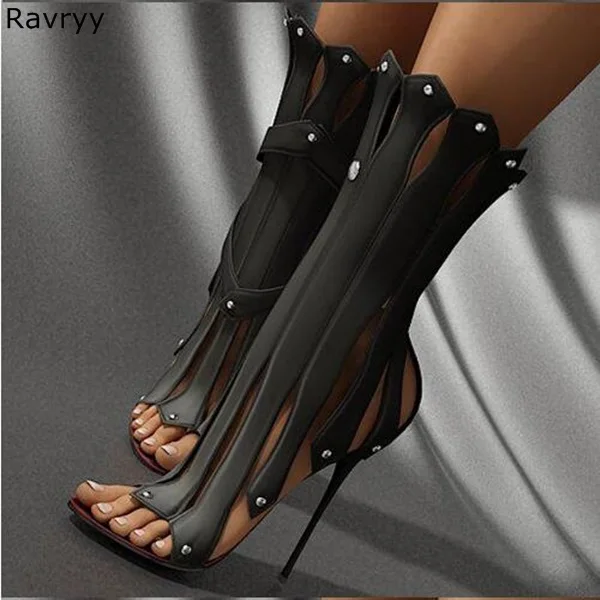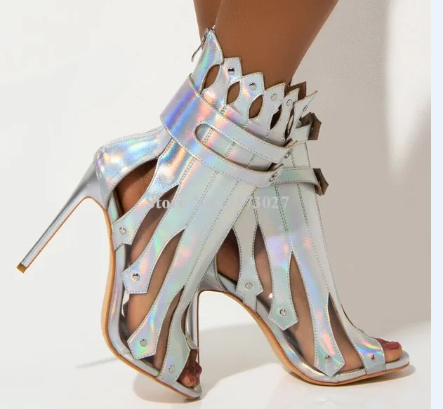 Сандалии женские с вырезами, босоножки на тонком высоком каблуке, уникальный дизайн, пэчворк, разные цвета, модная обувь Saint Seiya