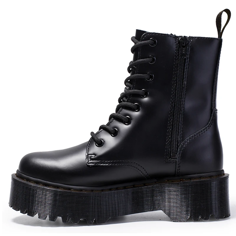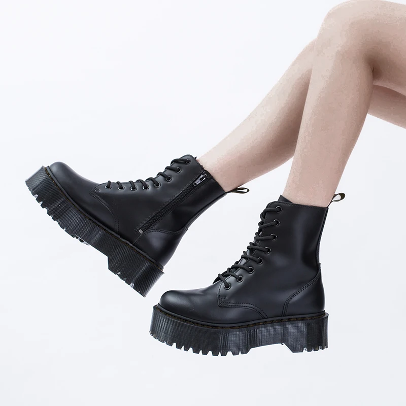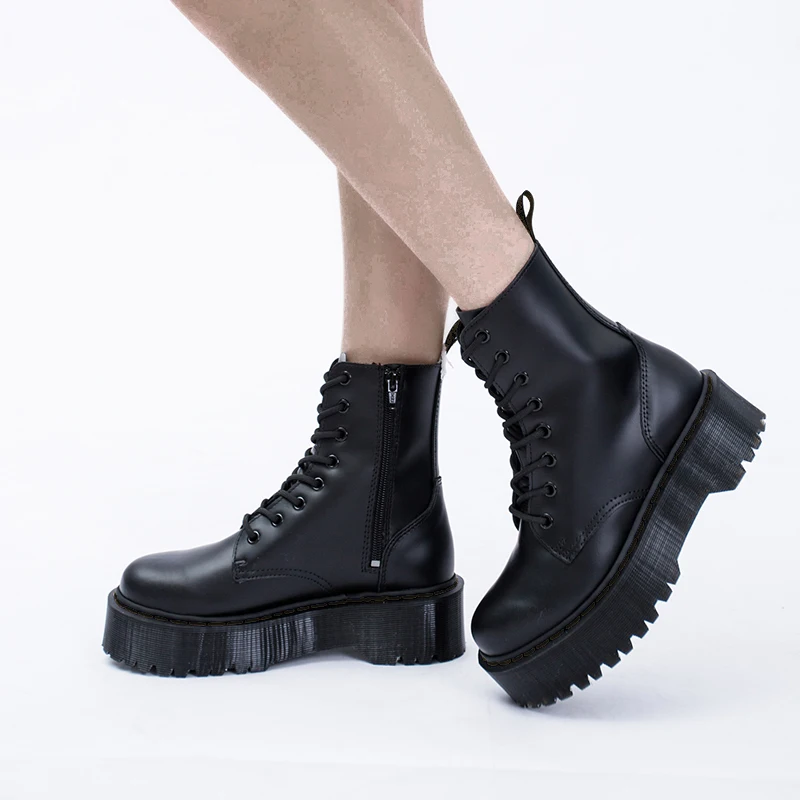 Женские ботинки на платформе, Черные ботильоны из натуральной кожи на толстой подошве, мотоциклетные ботинки на толстом каблуке, большой размер 43, для зимы, 2021