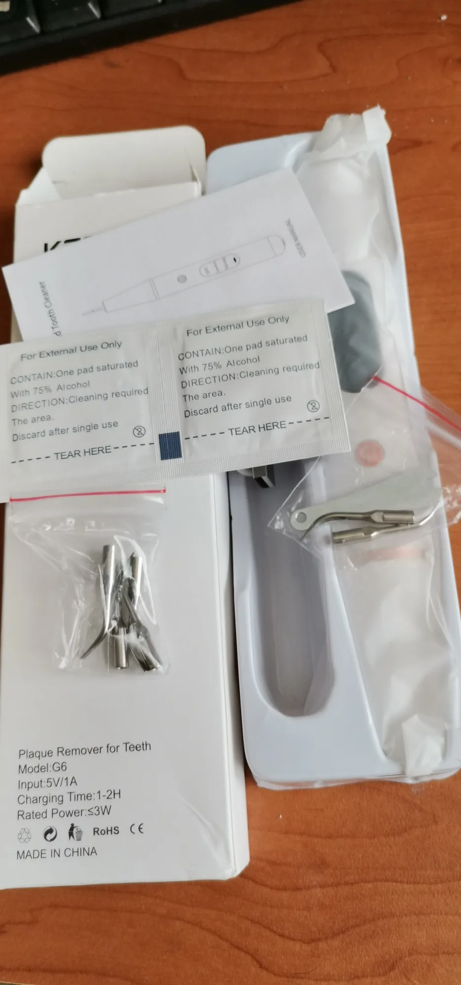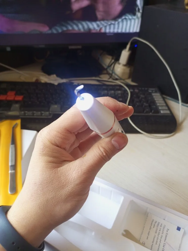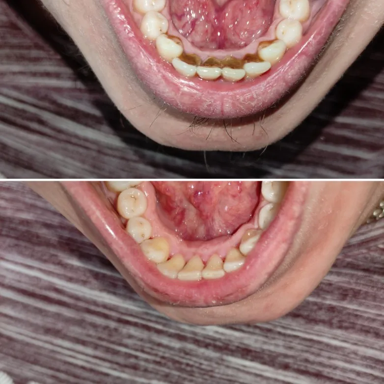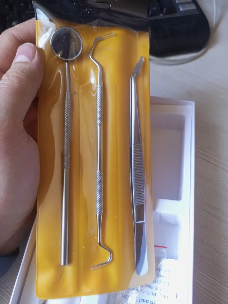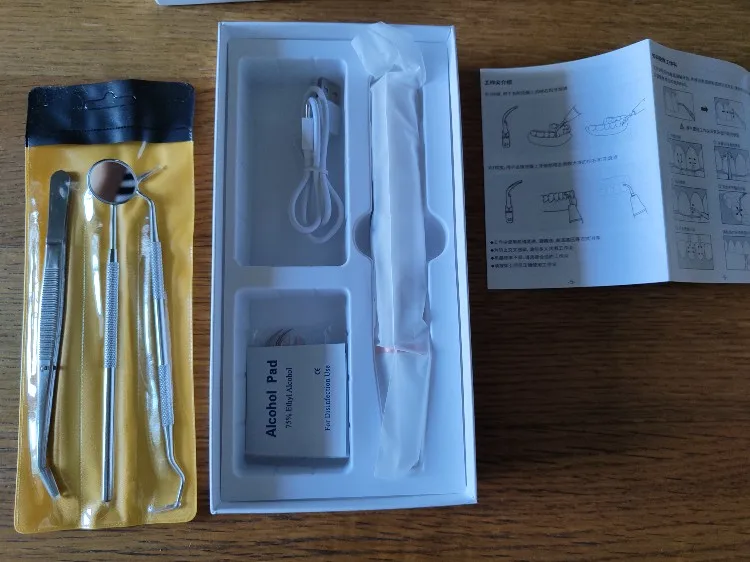 В общем отписываю реальный пруф. Заказал 2 комплекта со склада в РФ, дошло за 3 дня до Питера, Второй комплект брал в подарок. Упаковки целые и аккуратные. Видео инструкция понятна, картинки на китайской инструкции понятные. Фото своих зубов прилагаю, на фотке видно чистка одного зуба за 3 минуты удалил налет. Вся чистка вышла за максимум полтора часа. Думаю мелкие точки, уберу тонкой насадкой. Я заядлый курильщик и не обращался к стоматологу лет так 7, но такого эффекта и вправду не ожидал. Никакого дискомфорта состороны десен и зубов. После чистки стало очень комфортно. Респект китайцам. Подтверждаю, что все положительные отзывы ниже, правдивые. Считаю, что такой прибор должен находиться в каждой семье, цена его ничтожна мала, по сравнению с походом к врачу, за его чисткой. И то, не каждый врач, вам так хороше почистит, как сами себе. Берите смело. Буду также всем своим близким советовать это чудо устройство.