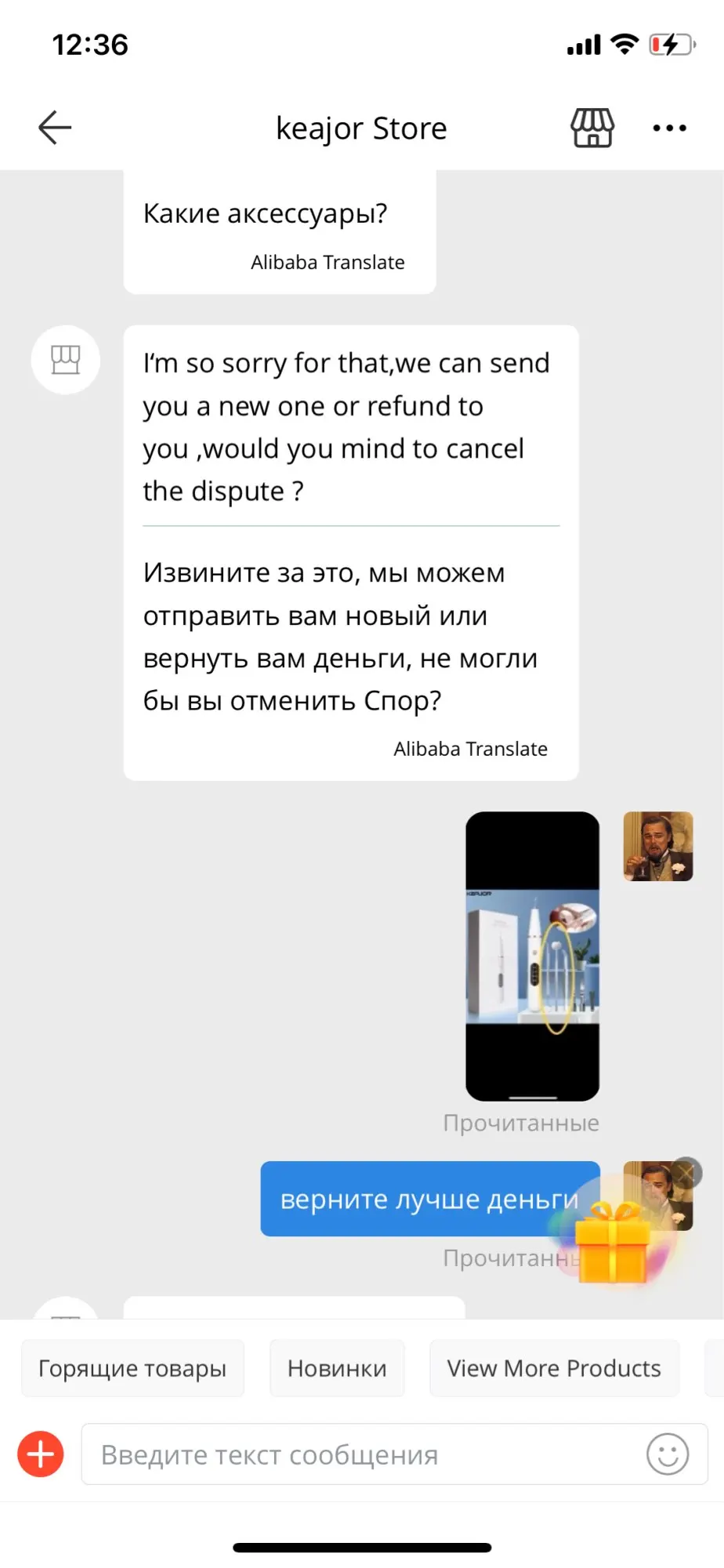 Товар не работает. Продавец морочит голову, учит как правильно включать подзарядку. Соглашается что выслал вместо полного комплекта, только скалер, и тот не работает. Отказывается вернуть деньги, когда спор открыт. Просит закрыть спор. Но в споре выставляет возмещение 0$ с пометкой что не видит проблем с посылкой. Игнорирует ваши сообщения, и всегда смайлик со слезами. Хорошо что алиэкспресс вернул деньги. Продавец шарлатан и мошенник.