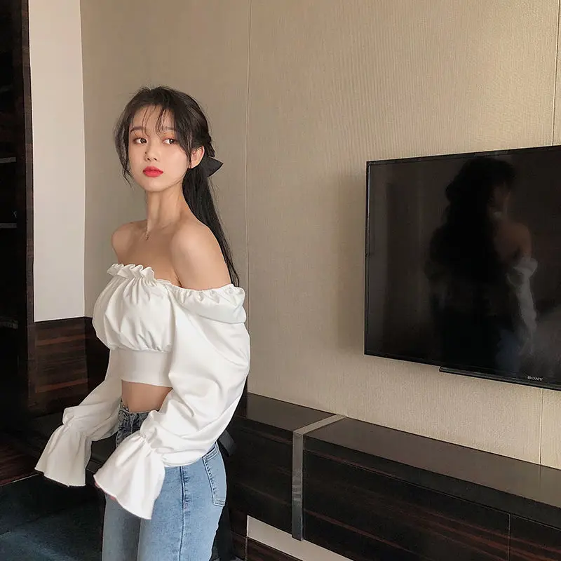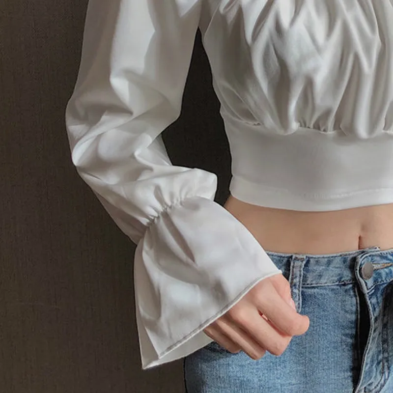 Блузка женская с пышными рукавами, пикантный облегающий укороченный топ с квадратным вырезом, элегантный шифоновый черный топ, на лето