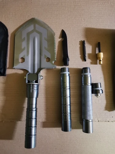 Товар соответствует описанию. С продавцом не общался. Отправили быстро. Длина 68см, вес 910гр. Малая саперная 715гр. На резьбах уплотнительные прокладки, люфтов нет, как быстро выйдут из строя не известно. Отвёртка вставляется в пластиковую вставку. Нож не бритва но наточен норм. Пилки пилят, боковое ребро рубит, но нужно понимать что это не топор с его массой и не ножовка. Свисток и огниво работают. Копающая кромка не заточена, толщина 1.6мм. Подточил болгаркой с лепесткковым диском. Чехол слабенький, тонкий, не о чем, просто для хранения, крепления под ремень нет. Вроде все крепкое, копать не пробовал. Товаром доволен.Sergey R. 28 октября 2022