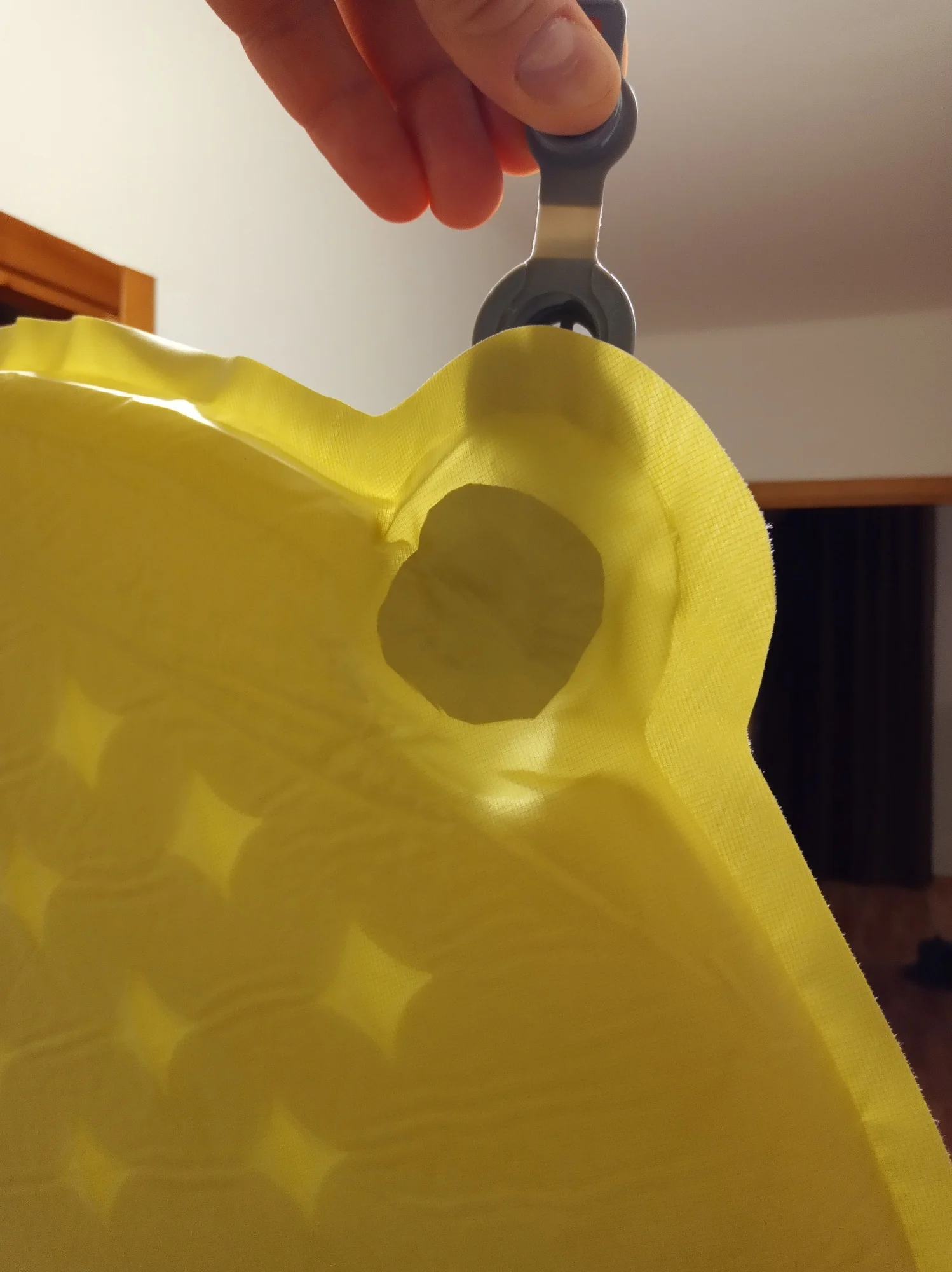 Поскольку цена за этот коврик не маленькая по сравнению с похожими ковриками в магазине Спортмастер, и он был хорошо разрекламирован археоклубом, позволю себе снять сразу две звезды за размер и хвалённый клапан. Размер на фото: длина на 6 см меньше заявленной. Разумеется исходя из функций коврика бахрома в зачёт не идёт. Немного о клапане, точнее о месте его крепления. Чтобы открывать и закрывать его, нужно прилагать определённые тянущие усилия или давление на тонкую оболочку коврика, куда клапан упирается своим жёстким пластиком, рискуя когда-нибудь вырвать клапан при открывании или же протереть противоположную оболочку коврика, на которую этот клапан будет давить при закрытии. Эту проблему я частично решил, проклеив кусочком армированного скотча изнутри коврика то место, куда упирается клапан при его закрывании. На фото на просвет видна эта заплатка. Из мелких недочётов, не повлиявших на общую оценку, является ненужность сквозных отверстий в губке коврика, которые экономят максимум 5% веса коврика. А также силиконовая наклейка с логотипом, которое якобы будет препятствовать скольжению коврика по палатке. Однако её маленькая площадь делает эту функцию бессмысленной. Немного жалею о покупке, так как можно было взять более прочный, хотя и более тяжёлый на 300 г коврик из Спортмастера, который более дешёвый почти в полтора раза с учётом бонусной системы.RU s. 6 мая 2023