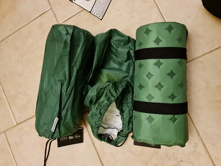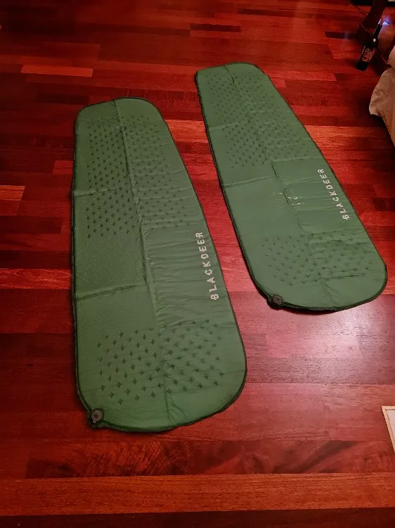 отличные коврики, приехали курьером. что-то они огромные, я не ожидал немного. обзор знаете все, где смотреть. лично протестить в полях не вышло, но на полу лежать мягонько) после приезда надувались долго, спустя минут 20 пришлось помочь им, но забыв про них на сутки они не спустили. ещё спустя пару дней уже с открытыми клапанами они держат форму (при надавливании слышен пшик воздуха, который мгновенно обратно восполняется, когда прекращаешь давить). в палатке 2р очень плотно лежат на прямом полу, надеюсь на фото будет понятно, они даже сдутые как бы буквой V располагаются, но когда двое ложатся, то за счёт натяжения стенок палатки все ровно становится, интересно, что будет на кривой земле в полевых испытаниях, наверное расчёт на расположение 'валетом', что не добавит комфорта, или один наедет на другой немного. теперь только практика покажет) клапана тугие, стршно дёргать, кажется, оторвешь) для мото поездок или не далёких вылазок отлично, а для пешего туризма все ж надо мелкие брать.