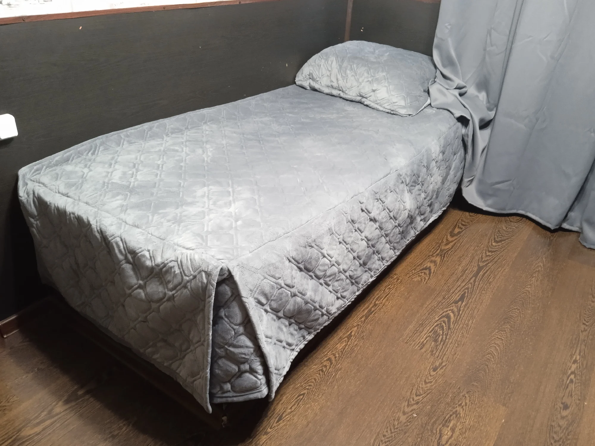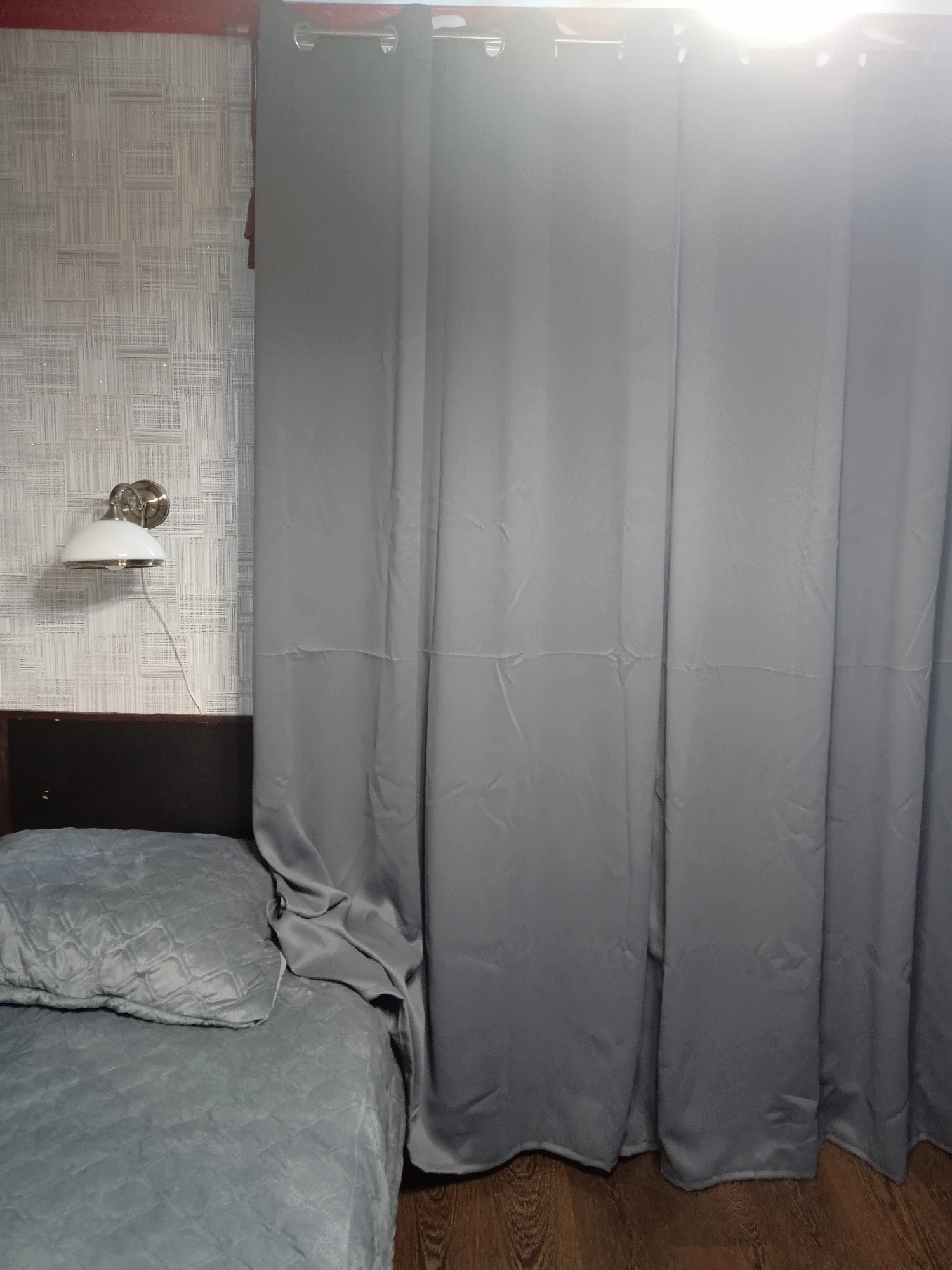 Заказываю шторы уже второй раз, до этого был цвет Coffee. Grey больше похожи на фотографии продавца (Coffee были темноваты). Затемняют похуже (в таблице продавца также указано про это). Материал не синтетика-глянец, а ближе к хлопку, шероховатый. В этом есть и минус - заломы, затяжки от любого прикосновения (вашей кошке будет где разгуляться). У меня один раз штора зацепилась за подоконник и осталась затяжка в половину шторы, а в другой раз за ноготь (при развешивании штор) - в итоге опять затяжка. При этом шторами мы пользуемся только неделю. Заказ пришёл спустя 2,5 месяца. Продавец отправил заказ только через 1 месяц, ссылаясь на китайский новый год. Это большой минус, шторы мы ждали очень долго, но продавец сделал нужную длину, как и просили, шторы легли идеально. В целом, не считая долгой доставки и ткани склонной к затяжкам, советую к покупке.