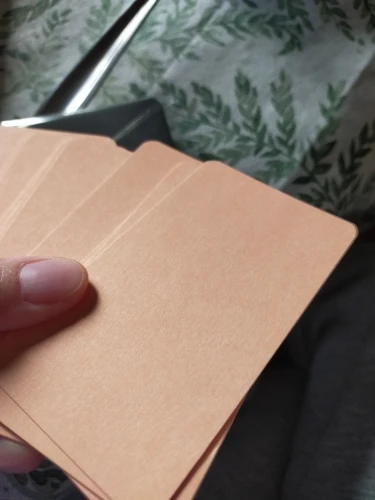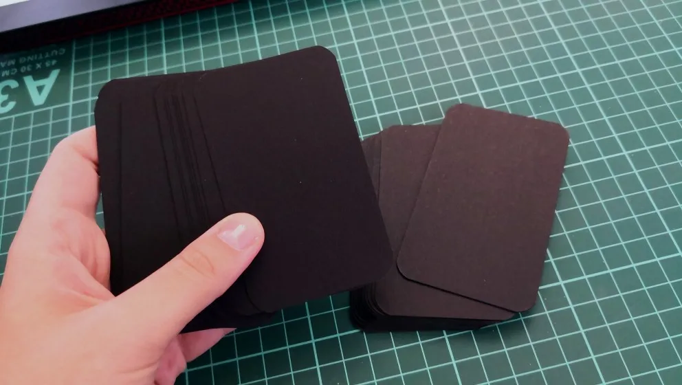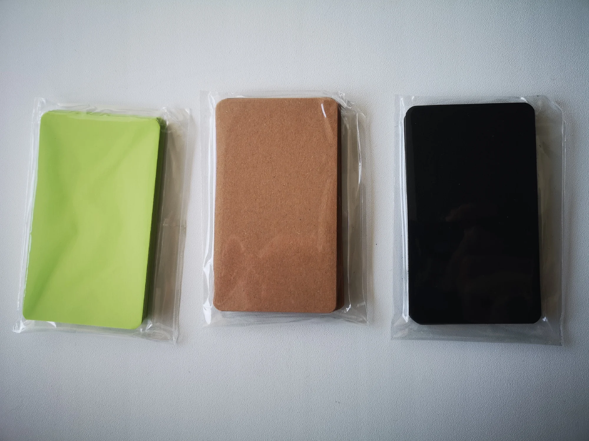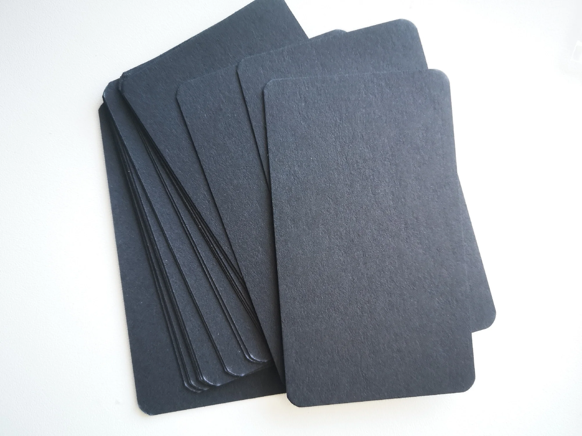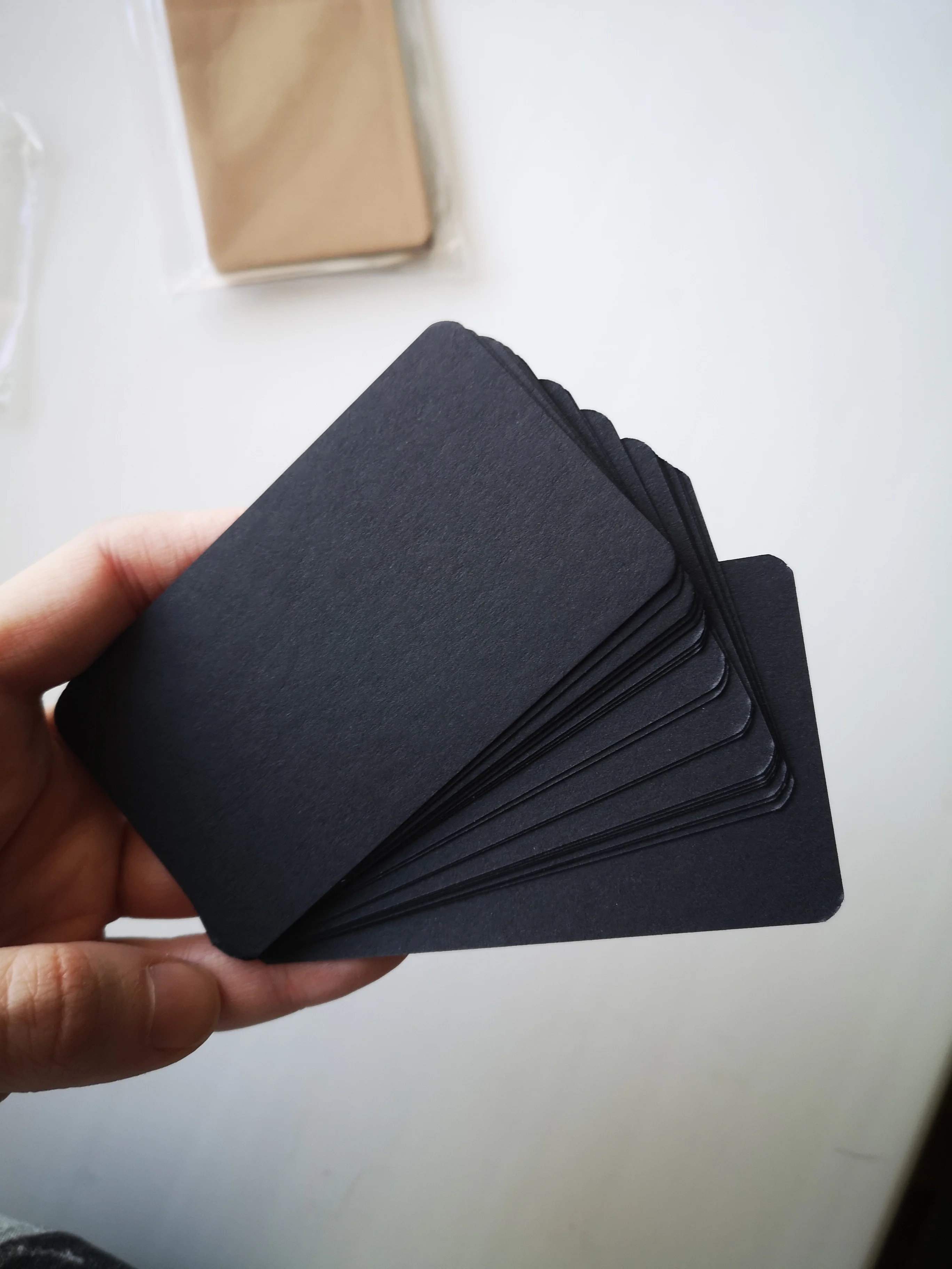 классные карточки из плотной крафтовой чёрной бумаги. по ним хорошо пишет белая ручка. пришло точное количество. но я ожидала, что они будут в картонной коробочке как на фотографии продавца, а они пришли в пластиковом пакетике. в целом довольна покупкой.