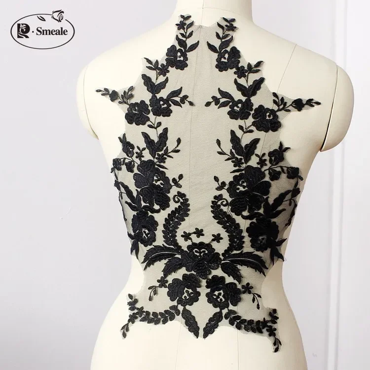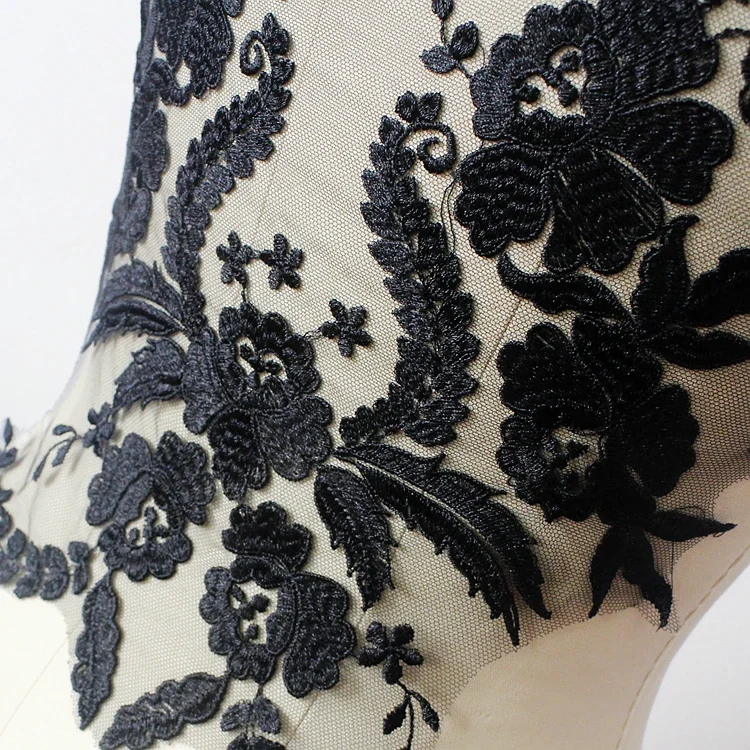 Французская кружевная ткань с вышитой аппликацией, черно-белый хлопок, высококачественные аксессуары для свадебного платья, ручная работа своими руками, RS254