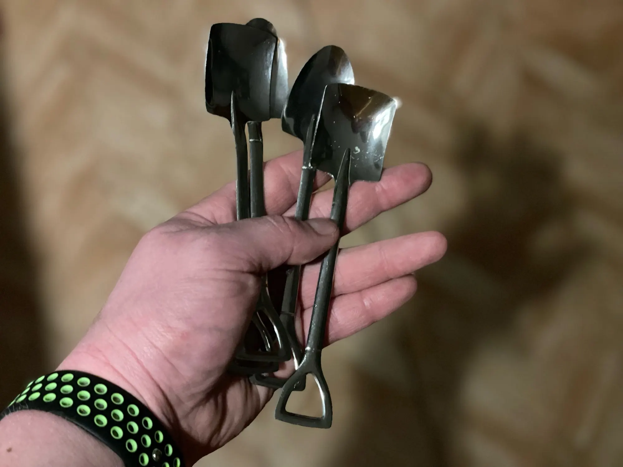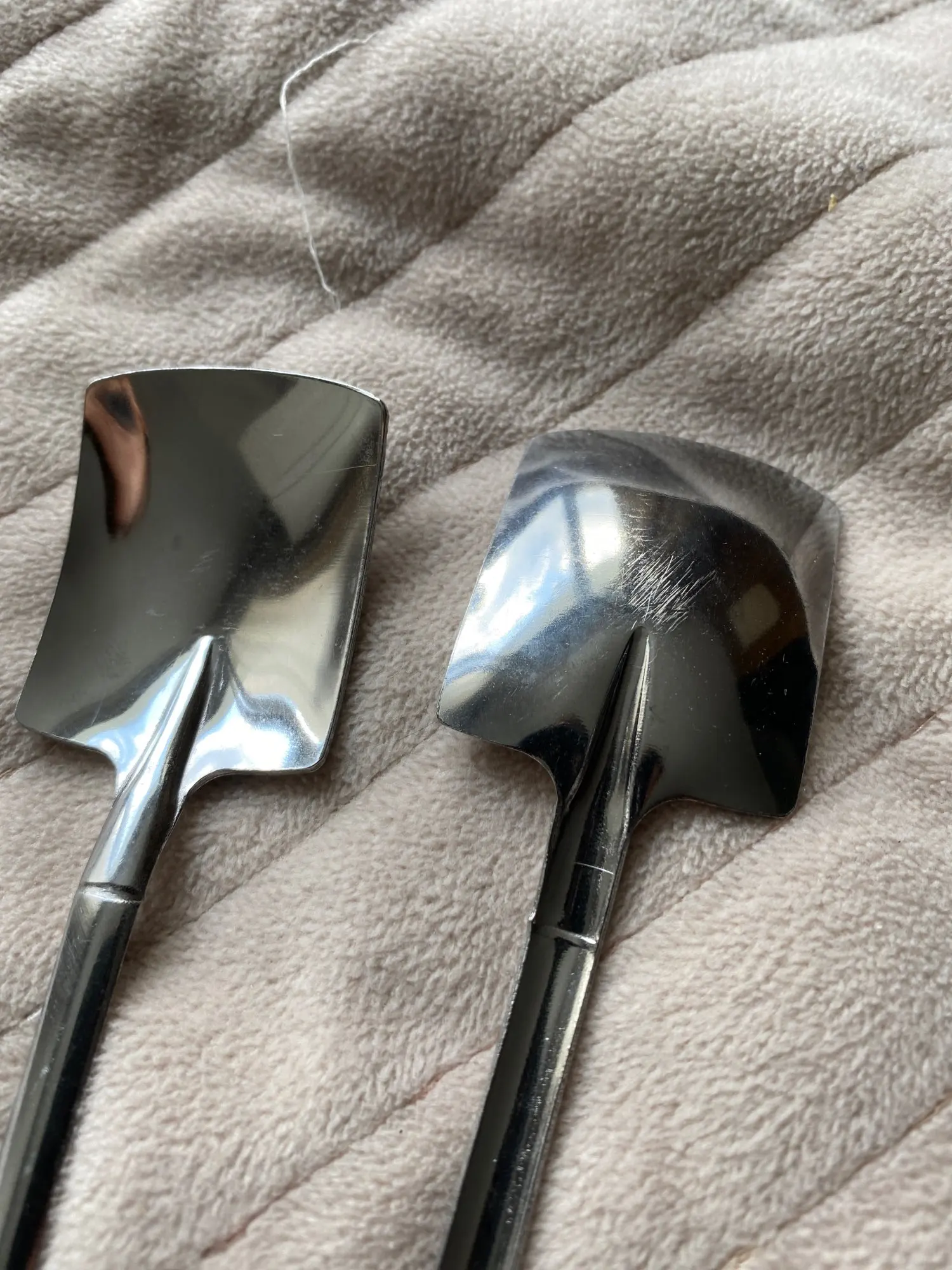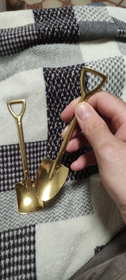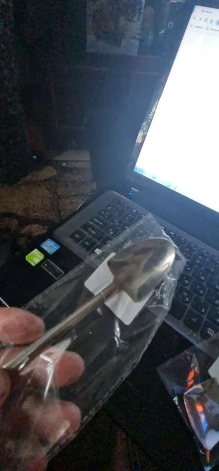 Края грубоватые, но не острые, довольно лёгкие, покрытие хорошее. Очень долго ждал доставку, больше двух месяцев, открыл спор, продавец настаивал дожидаться.. отслеживание пропало на таможне.. в итоге кинули их в почтовый ящик. Отсутствие понимания, где твой заказ, портит всё впечатление о продавце, хотя в итоге заказ всё таки пришёл. Сделал сравнительное фото с обычной чайной ложкой и в руке.