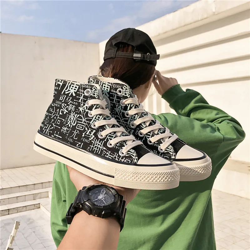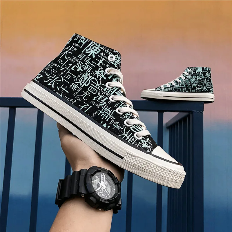 Кроссовки мужские с высоким верхом, модные холщовые, со шнуровкой, дышащие, повседневная обувь для студентов, светящиеся кеды