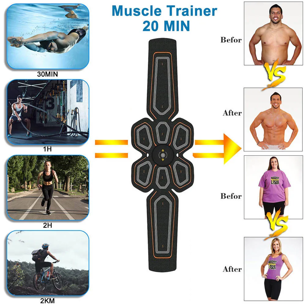 АБС-стимулятор тоник для мышц EMS, тренажер для пресса, Электростимуляция живота, USB зарядка, фитнес, домашние тренировки, тонизирующий пояс для мышц