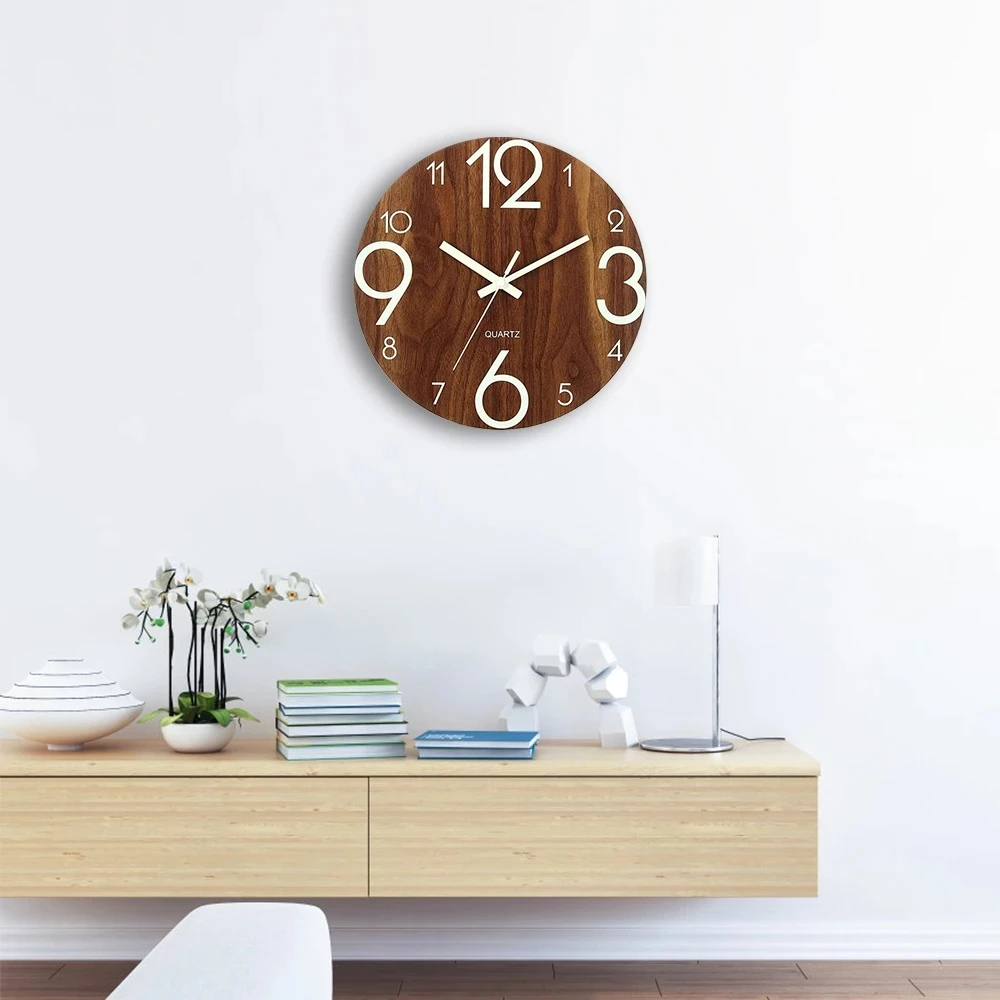 - Деревянные настенные часы со светящимися цифрами, Подвесные часы, тихи...