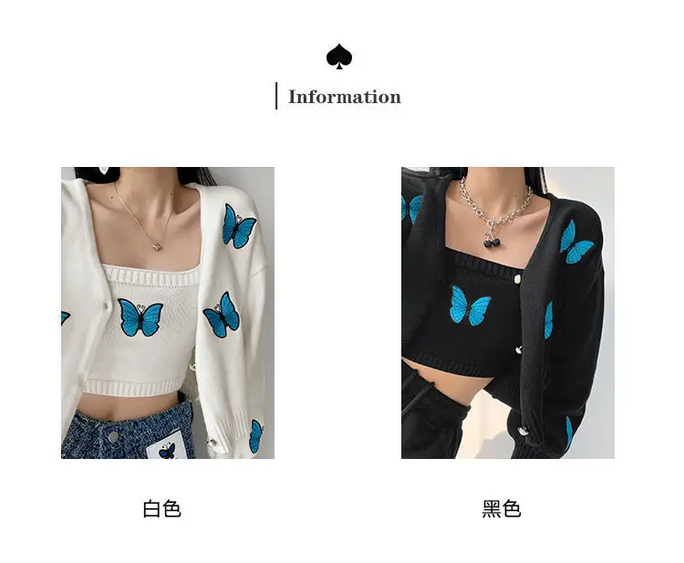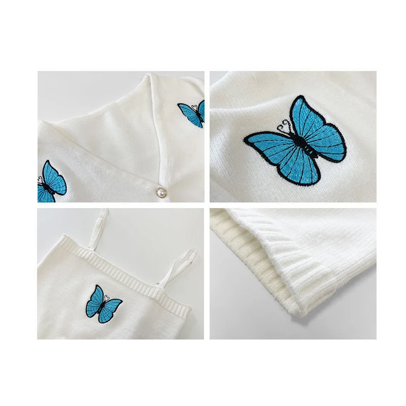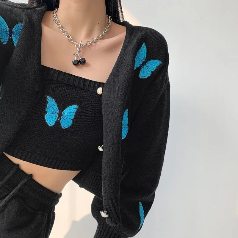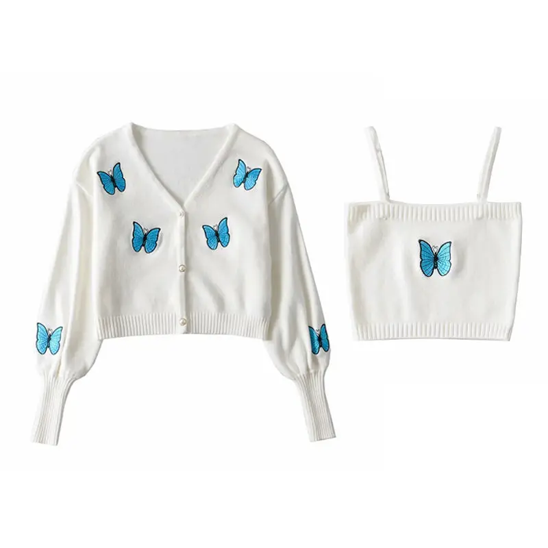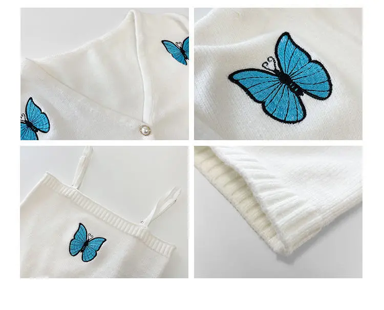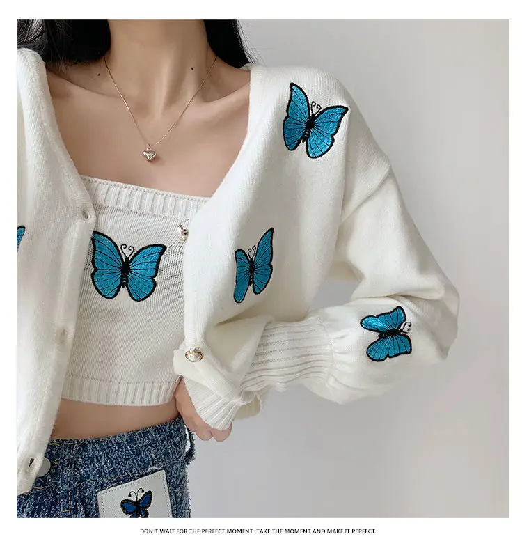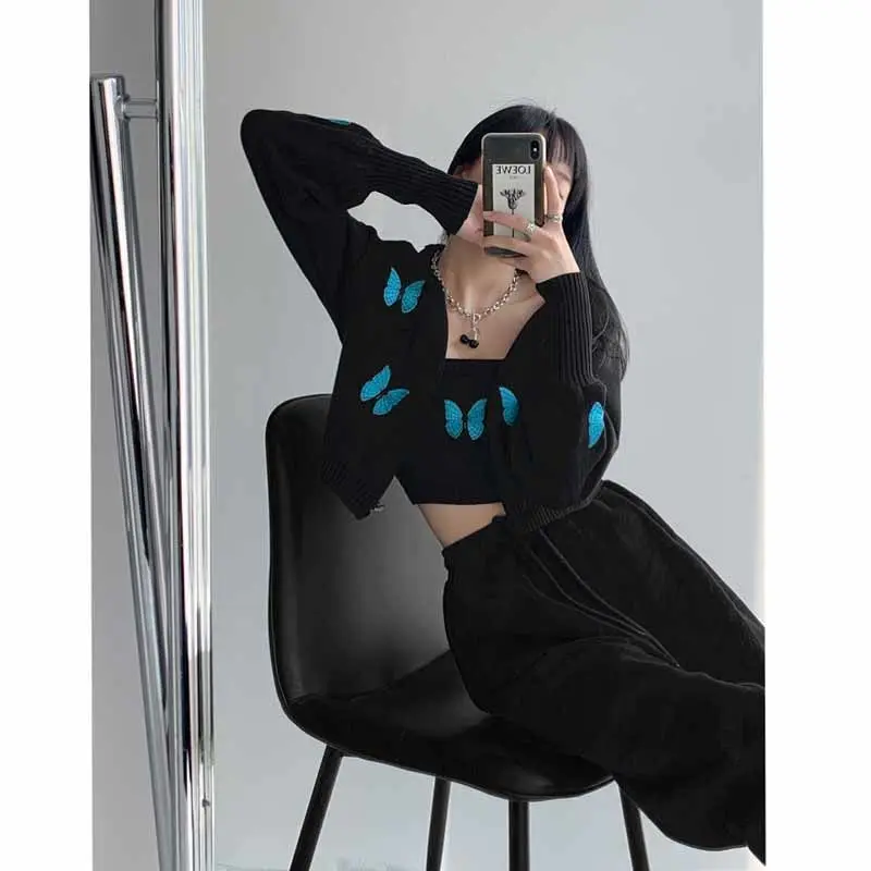 Женский винтажный кардиган с вышивкой в виде бабочки, корейский облегающий свитер с рукавами-фонариками, новый вязаный кардиган, куртка, женская кофта