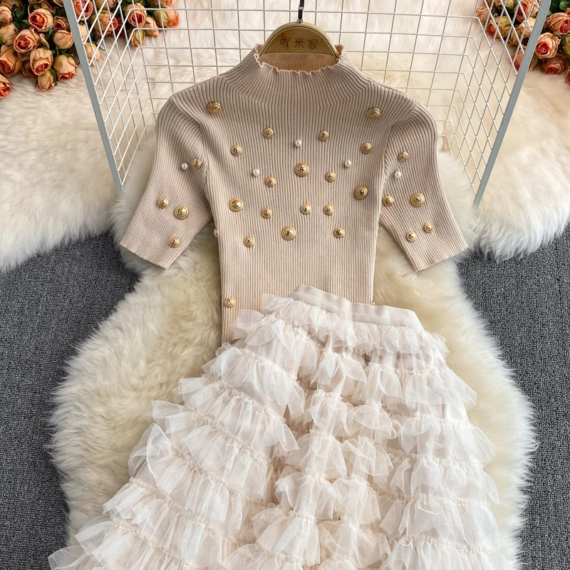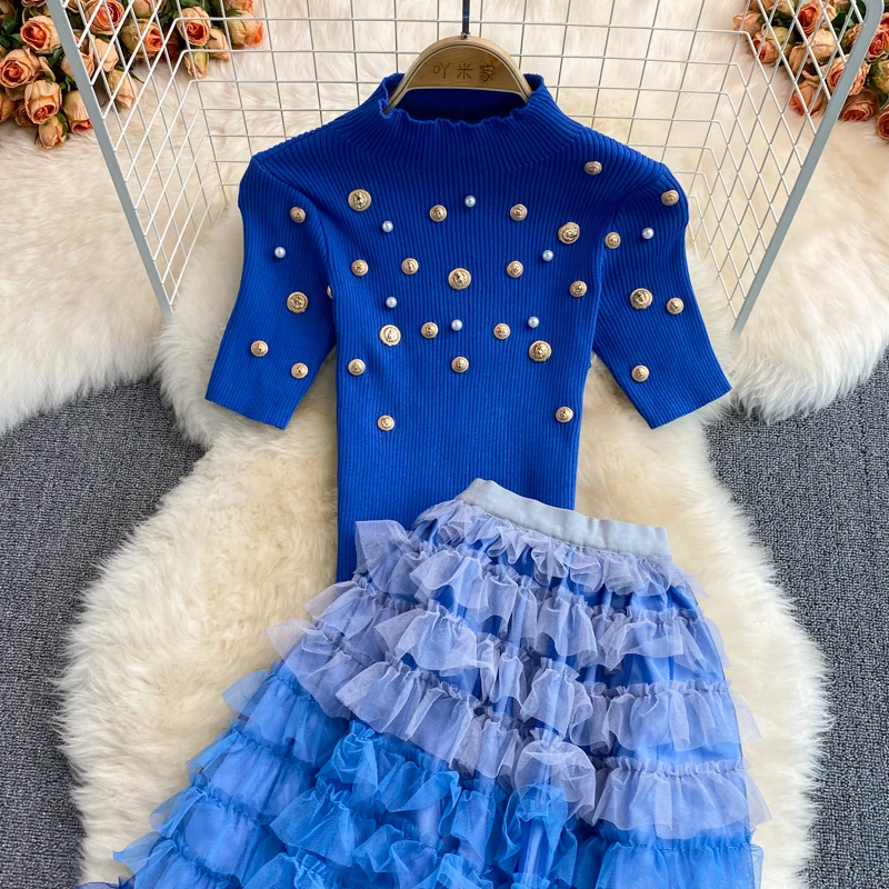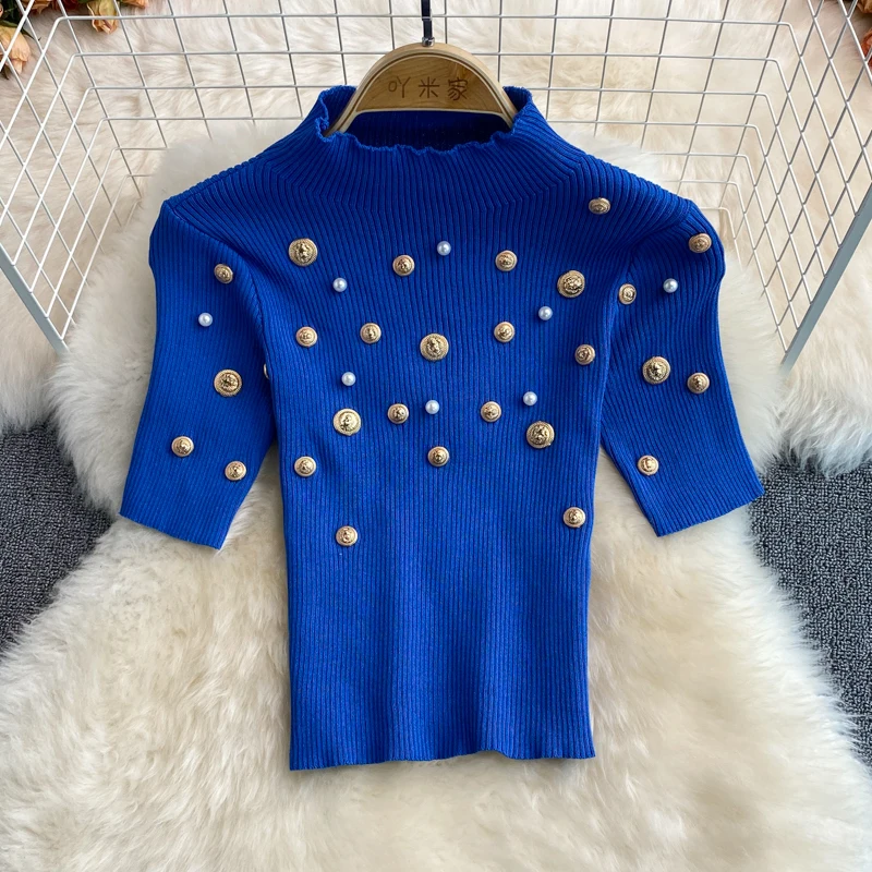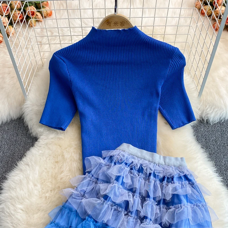 Женский трикотажный комплект из двух предметов, топ с коротким рукавом и воротником-стойкой