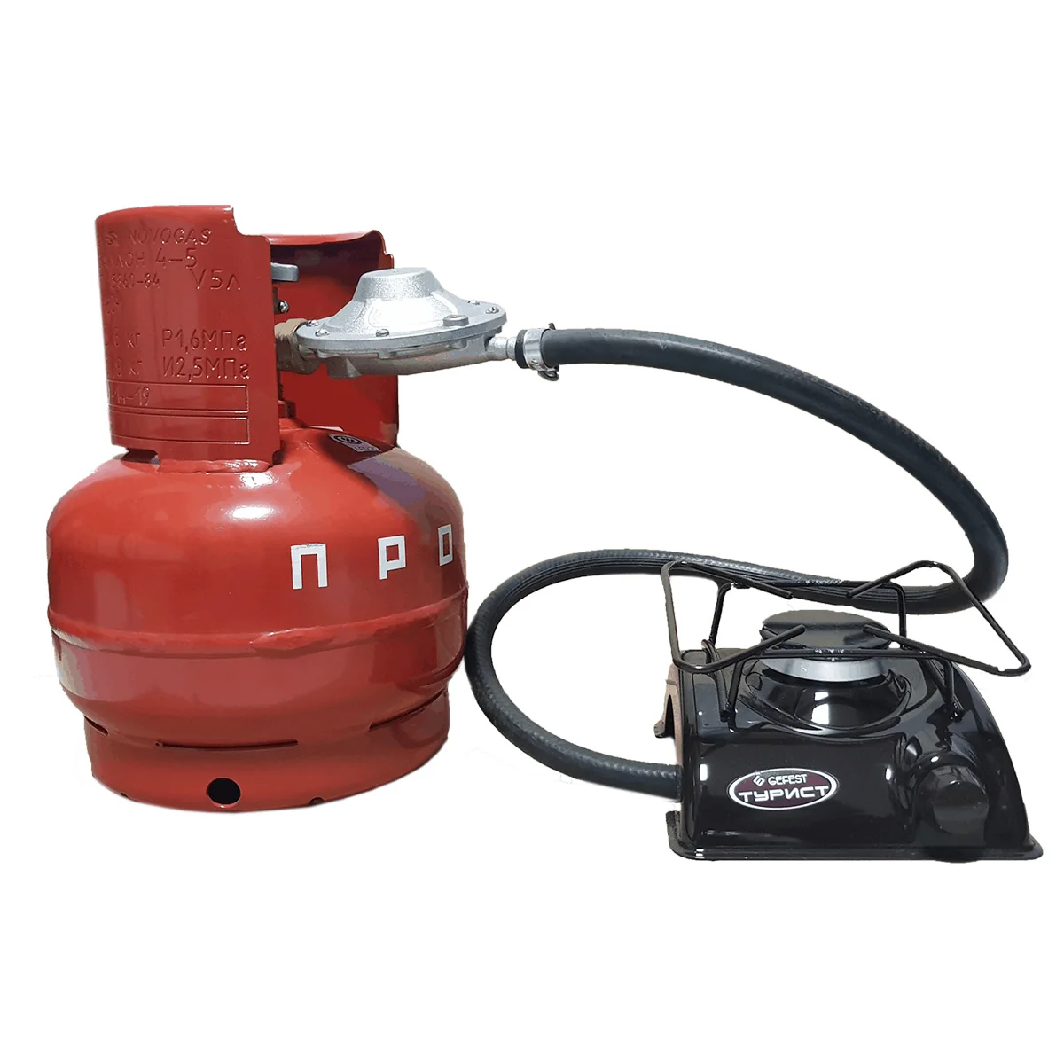 Туристический комплект, в наборе плита, газовый баллон на пять литров, рукав, регулятор давления