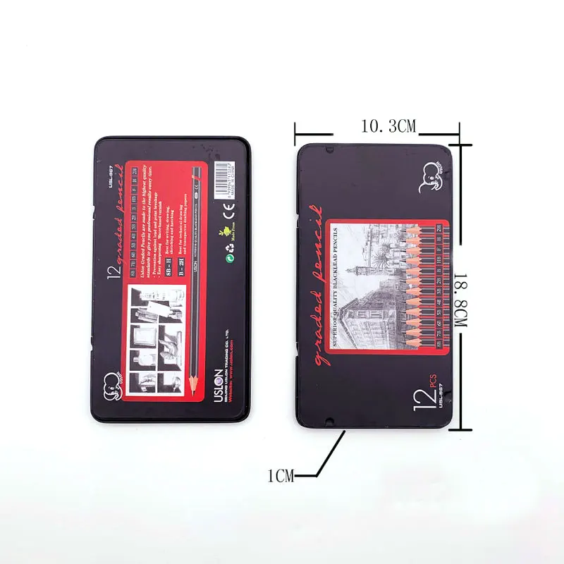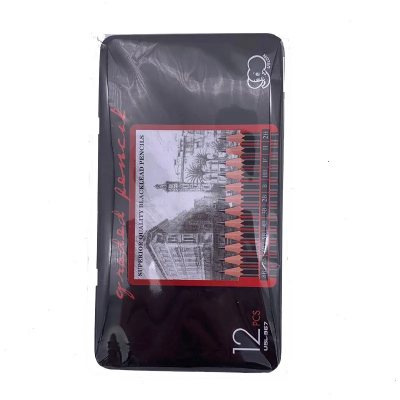 12 шт./лот набор карандашей для рисования 2H-8B, Графитовые карандаши для школы, металлическая коробка, Упакованные канцелярские принадлежности, художественные принадлежности, школьные принадлежности