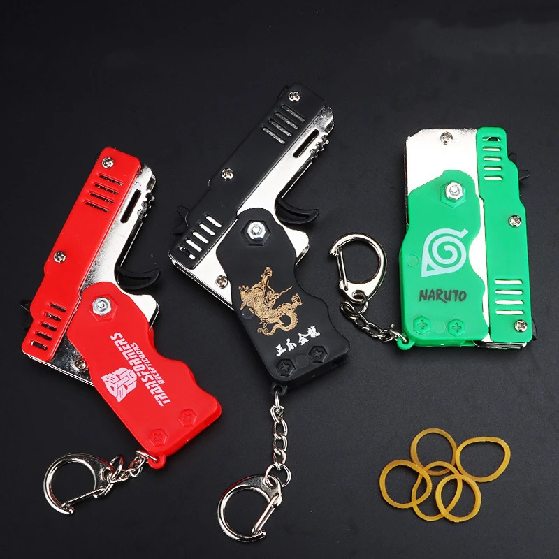 Металлический Игрушечный мини-пистолет, складной в качестве кольца для ключей, детская игрушка в подарок, резиновый игрушечный пистолет с шестью разрывами