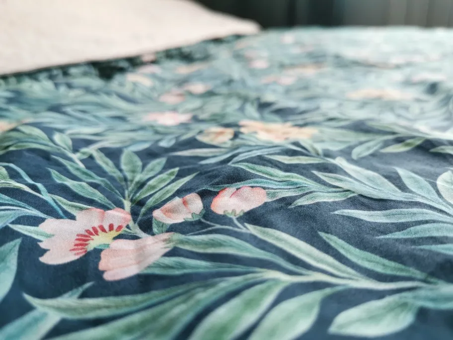 Ткань из египетского хлопка 60S. С большим количеством и плотностью, мягким и шелковистым ощущением. Используйте чистую реактивную 3D-печать. Четкий рисунок, высокая стойкость цвета, очень роскошный, без добавления вредных веществ при печати и окрашивании, не выцветает и защищает здоровье.