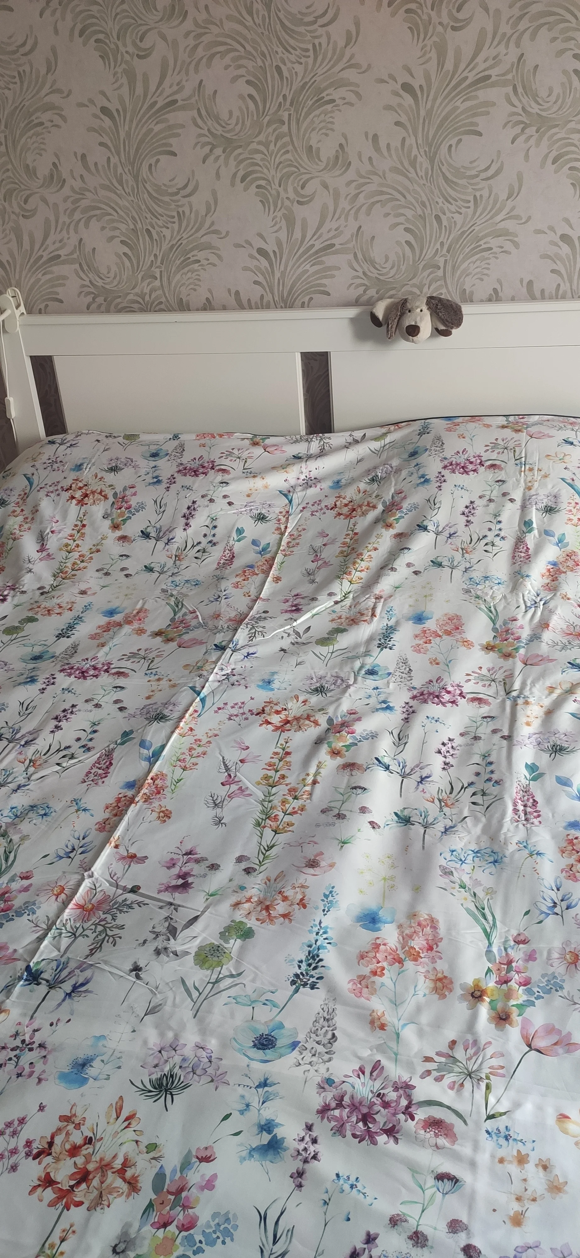 Постельное потрясающее! Приятное на ощупь, красивое, выглядит дорого. По размеру всё подошло на кровать 160х200 и матрас толщиной 27 см. Простынь достаточно большая. Брала без резинки, так как матрас глубоко сидит в кровати, достаточно подоткнуть, чтобы нигде не выбивалась. В пододеяльнике остаётся запас, но это не критично. Пододеяльник с замком. Наволочки плотно облегают подушки. Швы ровные, нитки не торчат. Если это кому-то важно: при распаковке присутствовал запах, но достаточно экспресс-стирки на 20 минут. Доставка довольно быстрая - три недели до Екатеринбурга. Заказ не отслеживался. Должен был принести курьер DPD, но сама изменила на пункт выдачи.
