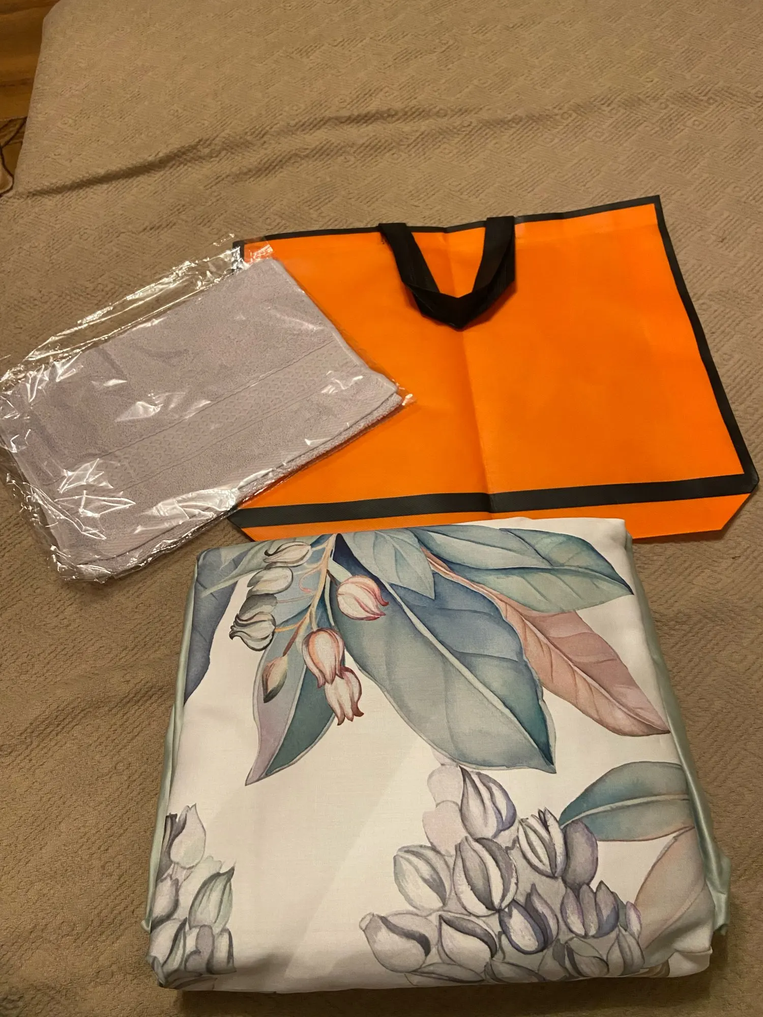 Упаковано во много упаковок, в том числе широкая оранжевая сумка, за продуктами с ней ходить буду. Доставка транспортной компанией была не удобная. Комплект крутой. Красивый. Большая дырка для одеяла на молнии. Грамотные наволочки, из которых подушка не вываливается. Простынь на резинке имеет с одного узкого края вставку из ткани с рисунком для ориентации в какую сторону заправлять. Приятных гладкий хлопок. В подарок положили хлопковое серое полотенце, спасибо, приятно). Мне очень понравилось. Спасибо!