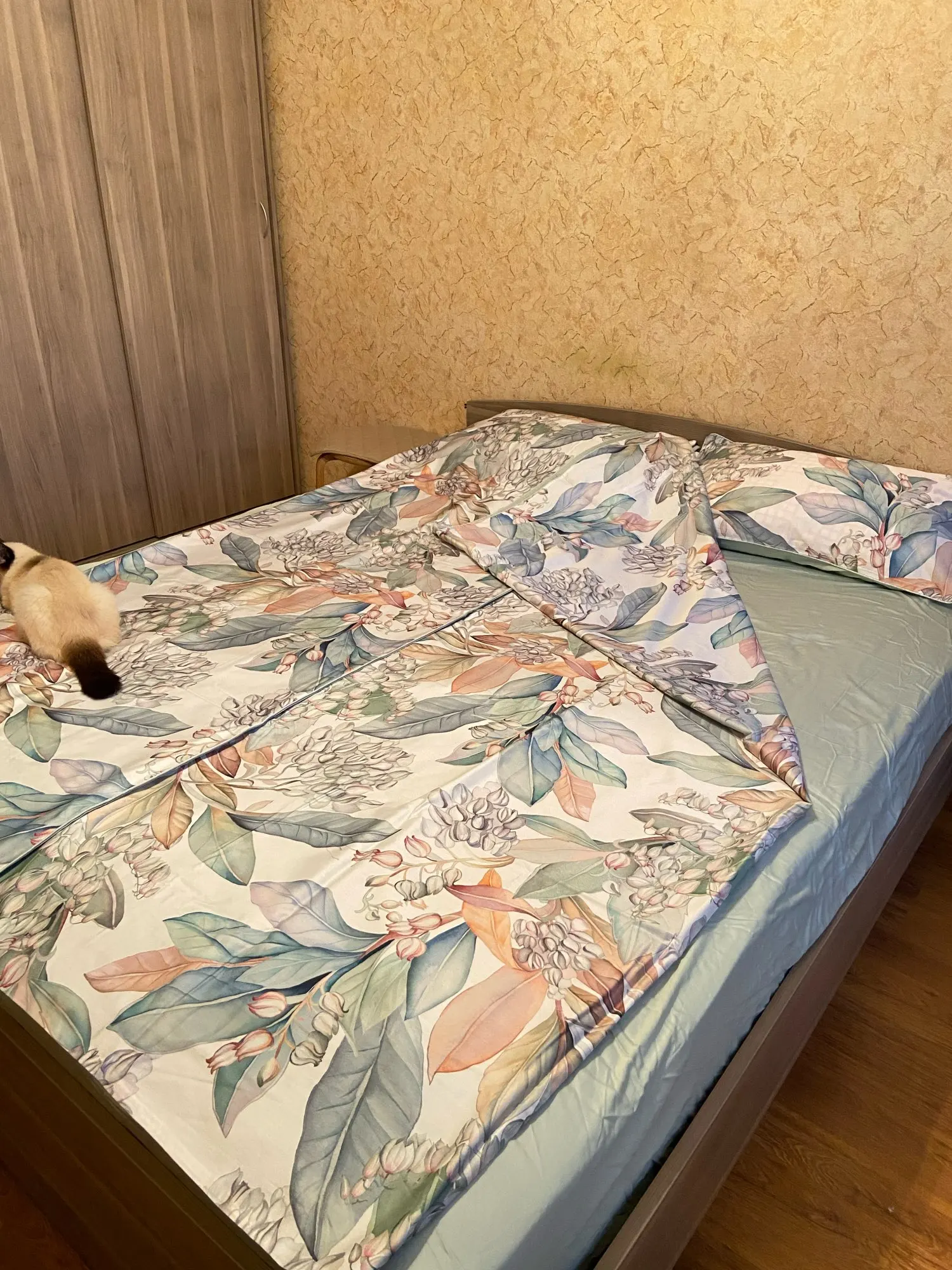 Поскольку транспортировка на большие расстояния, Комплект постельного белья не такой плоский, как на картинке, пожалуйста, постирайте и погладьте его, он будет плоским и красивым, как на картинке.