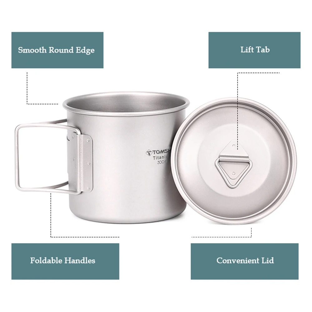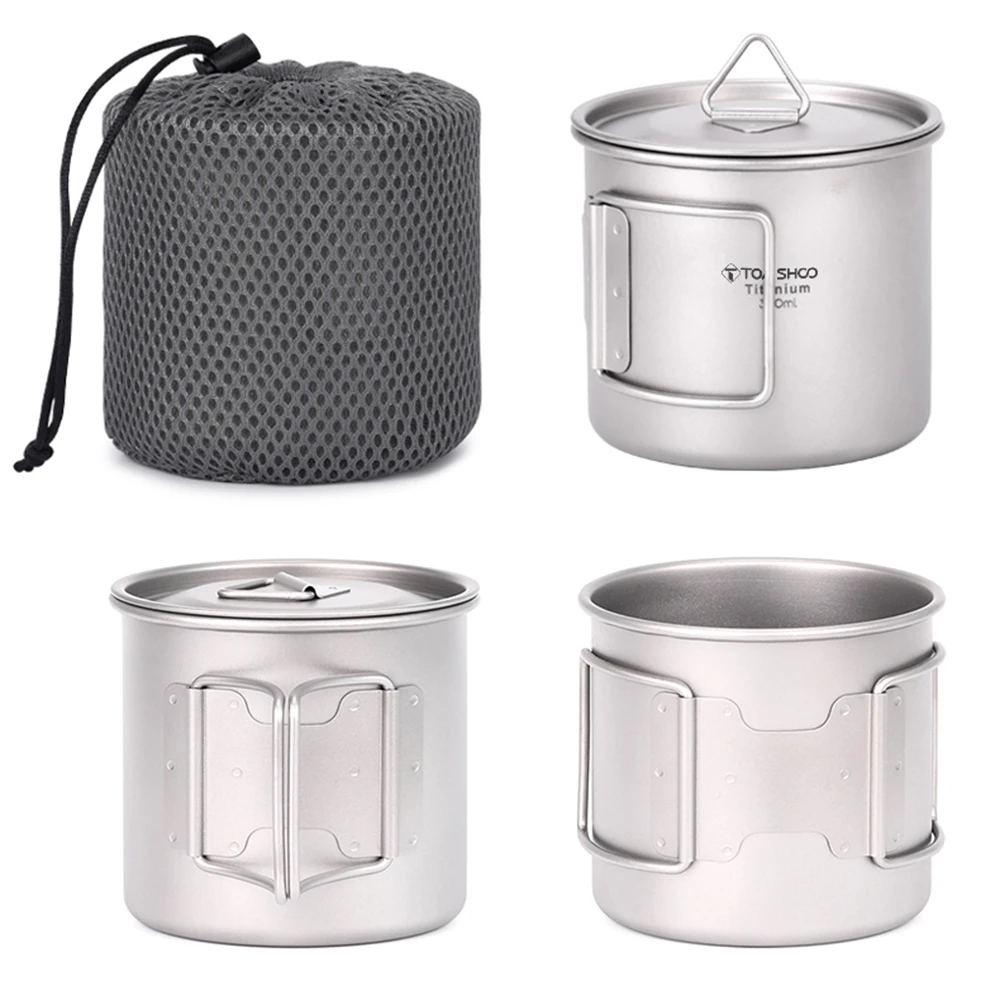 Ультралегкая титановая чашка Tomshoo, портативная чашка для воды для кемпинга и пикника на открытом воздухе, Кружка со складной ручкой 300/350/420/450/550/650/750 мл