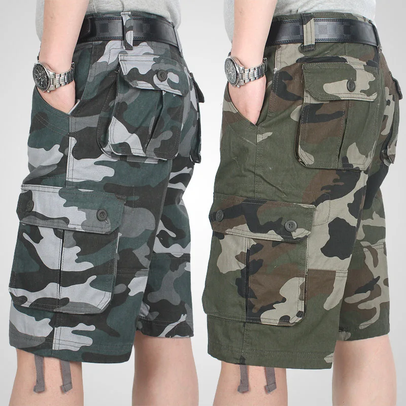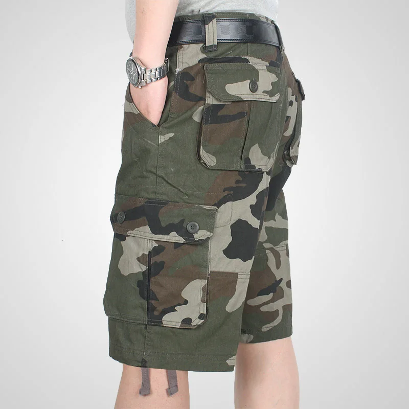 Шорты-карго мужские камуфляжные, хлопковые повседневные багги-бермуды со множеством карманов, уличная одежда в стиле милитари, тактические рабочие шорты в стиле хип-хоп, летние