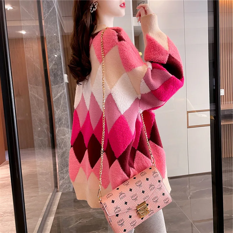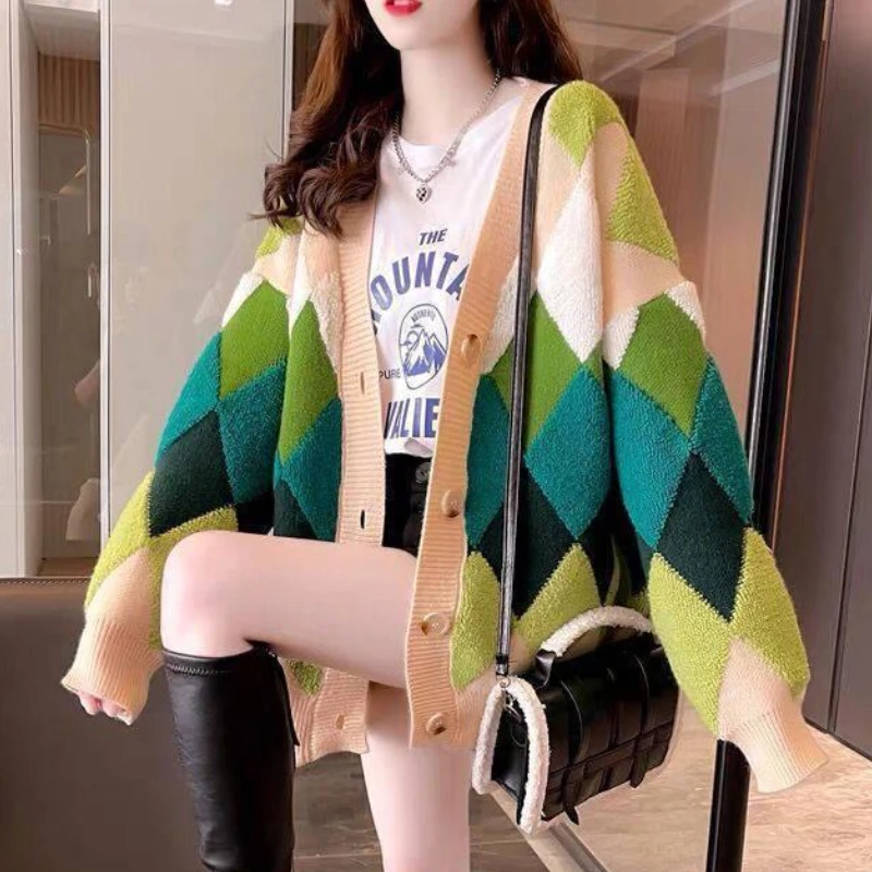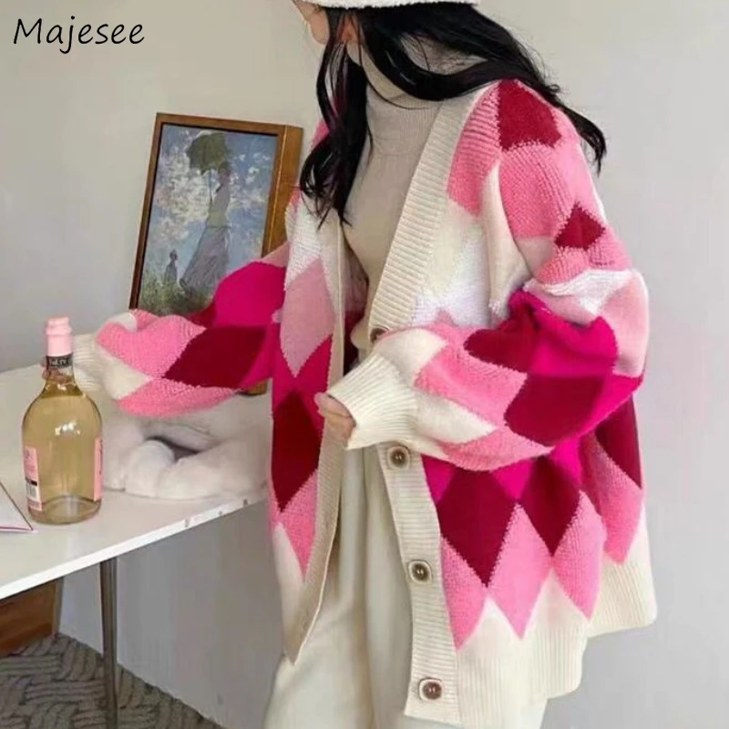 Кардиган Женский осенний свободный Свитер Женский ский уличная одежда для отпуска стильный универсальный с узором ромбиками напущенный Модный Нежный популярный Ulzzang