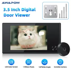 Дверной глазок Awapow 3,5 дюйма, камера 120 °, глазок «кошачий глаз», дверной звонок, Умный домашний уличный монитор, цифровой дверной глазок