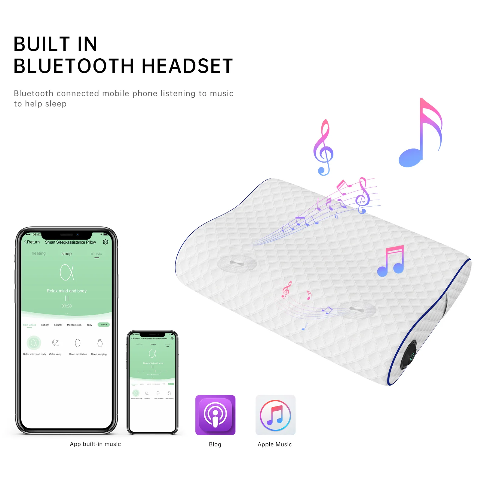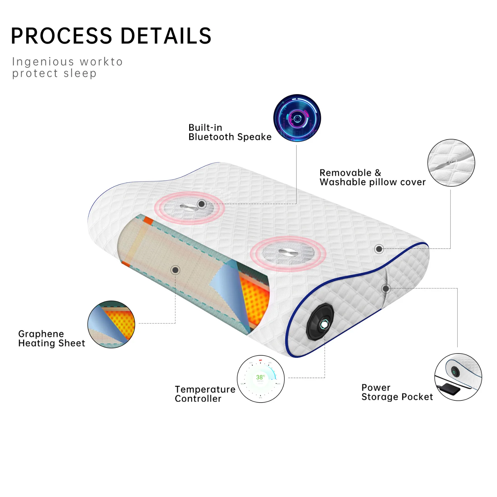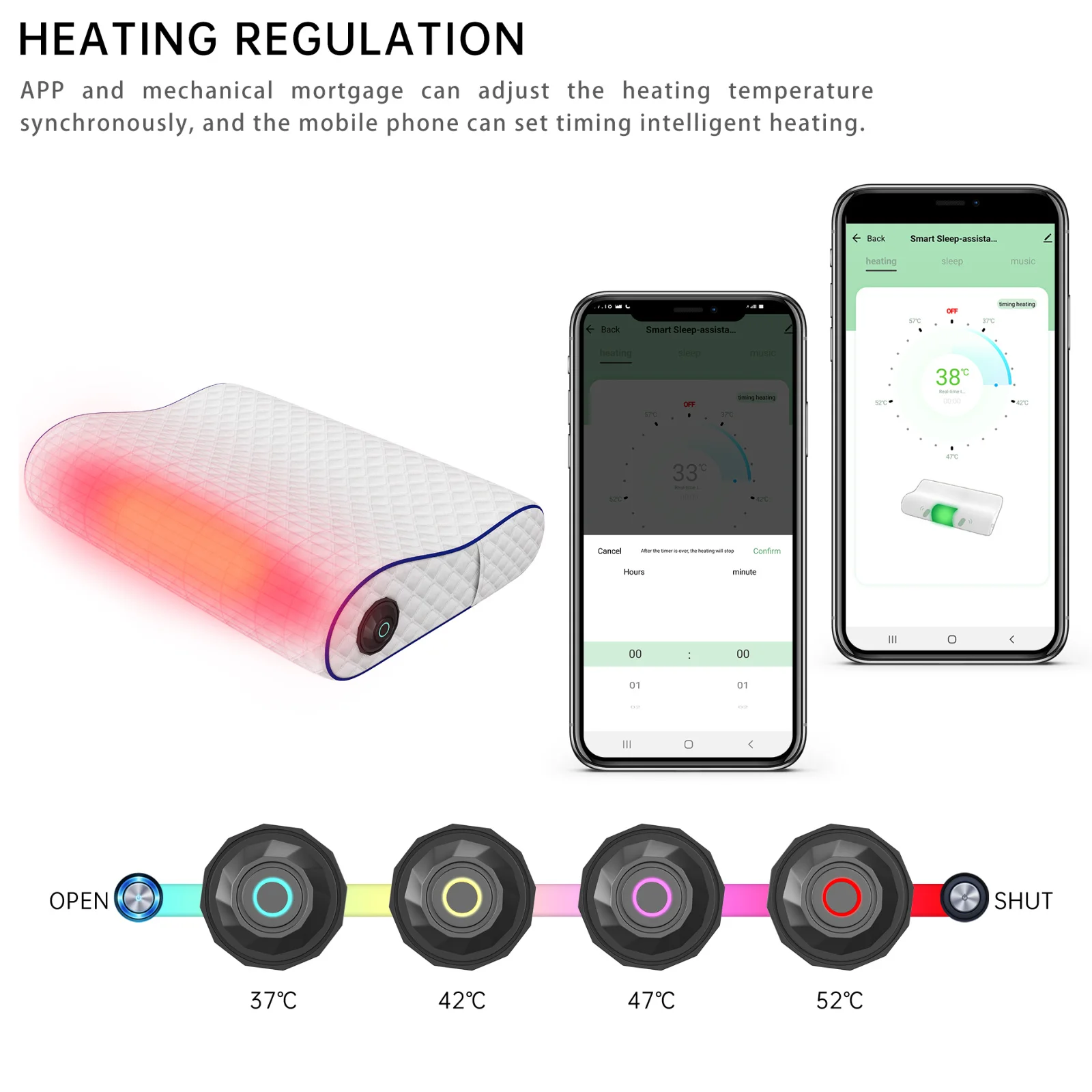Умная подушка для кровати из пены с эффектом памяти, из углеродного волокна, подогрев, Дальняя инфракрасная терапия, Встроенный Bluetooth-динамик, воспроизведение музыки, мониторинг сна