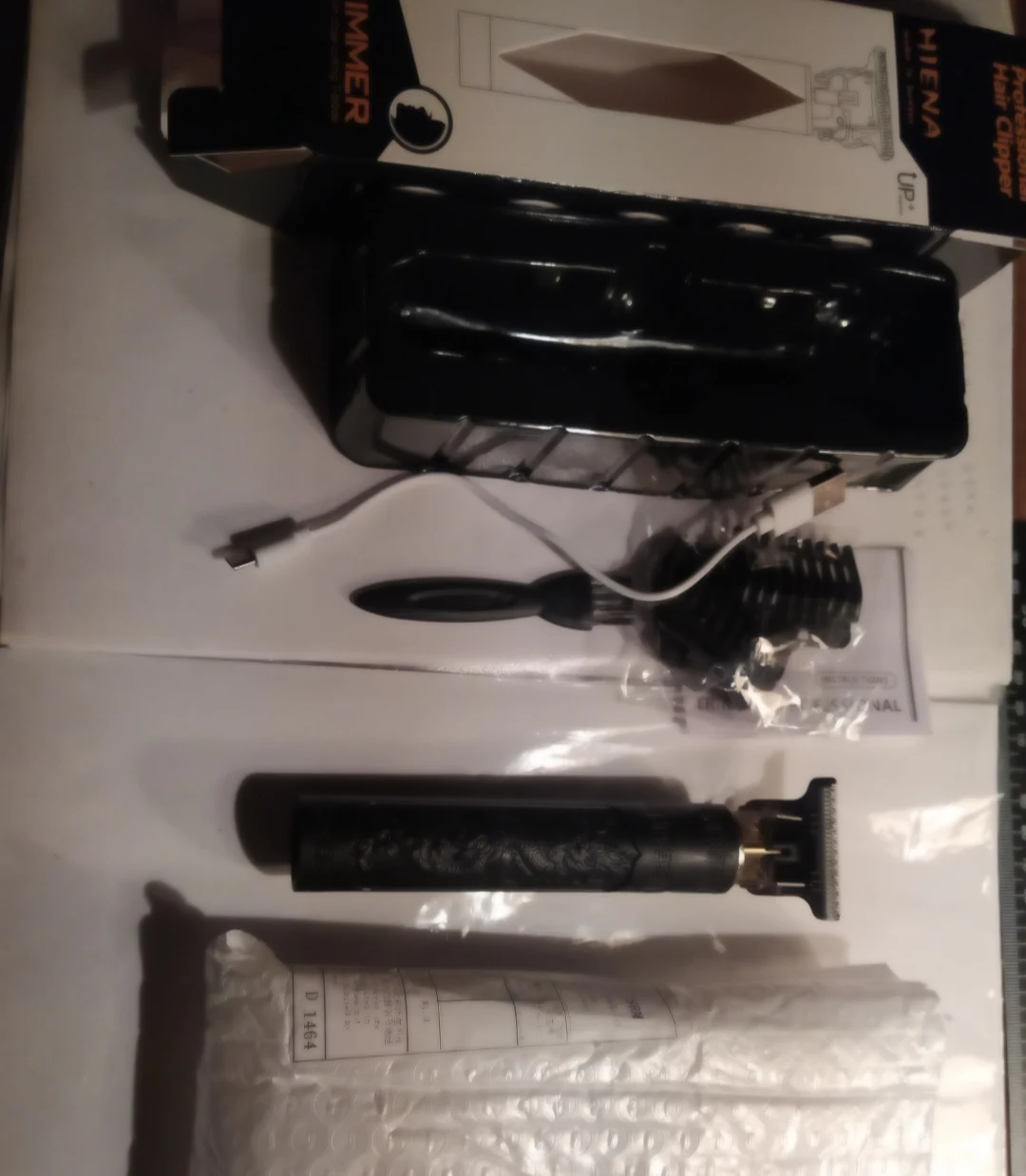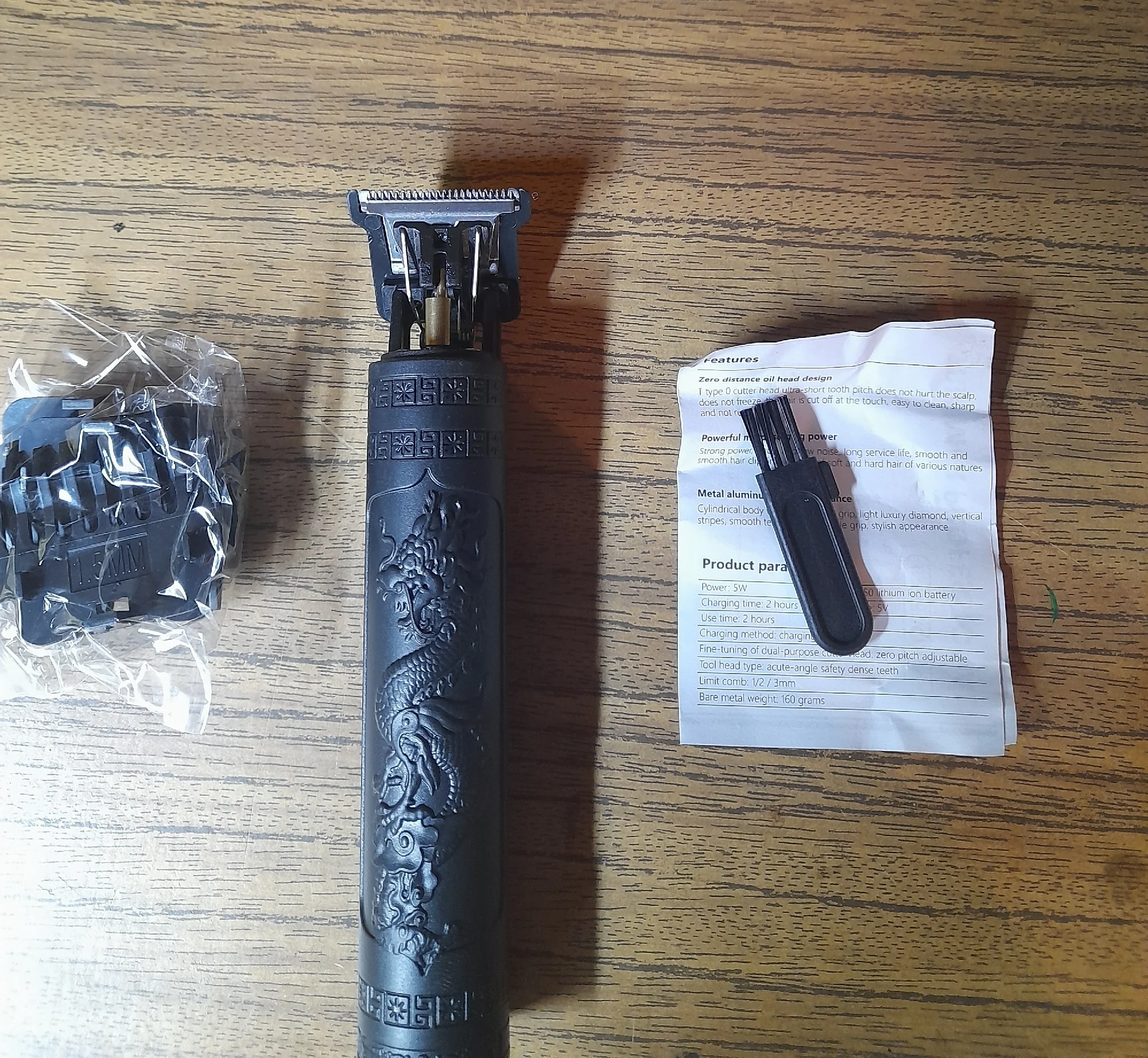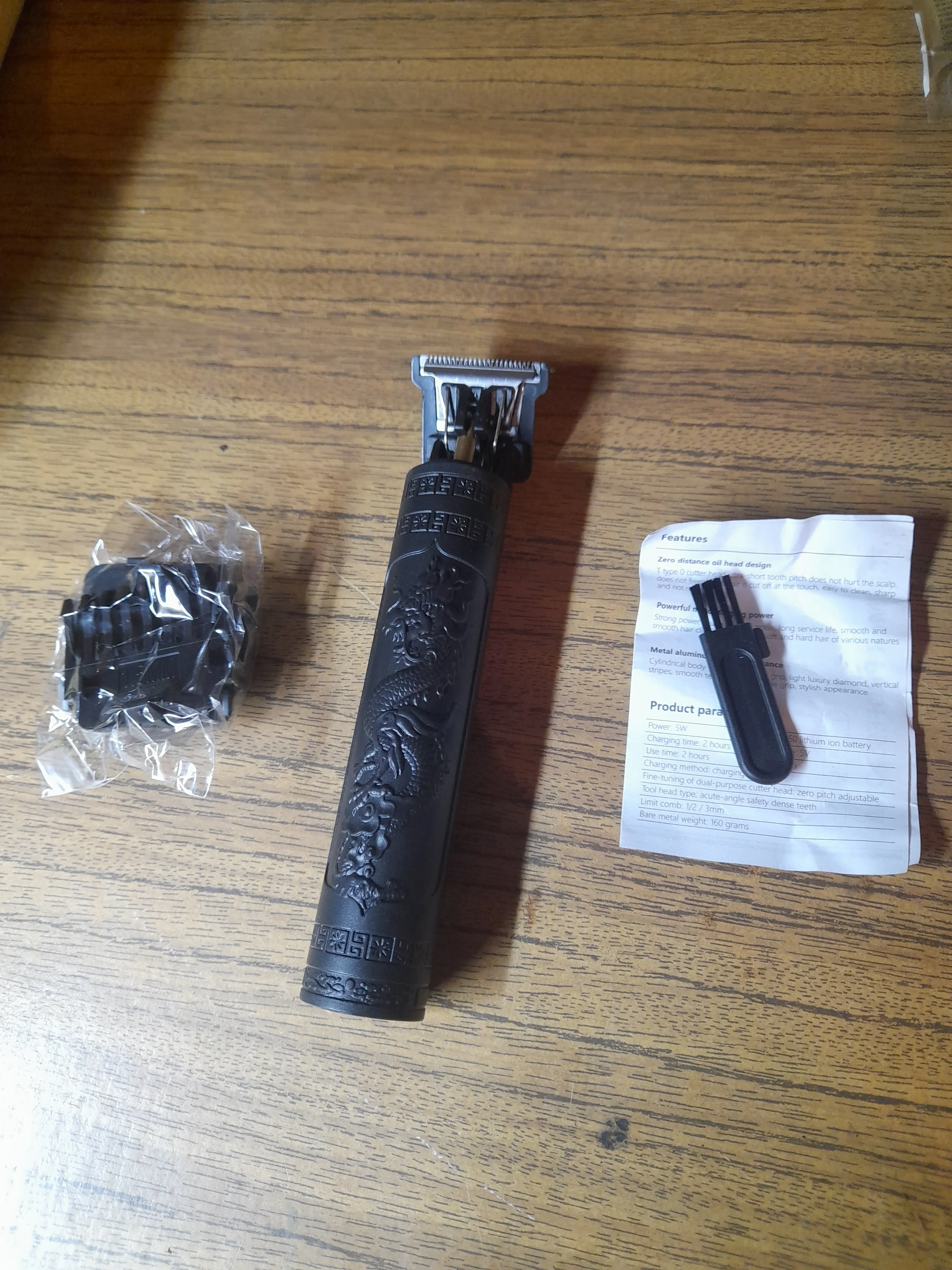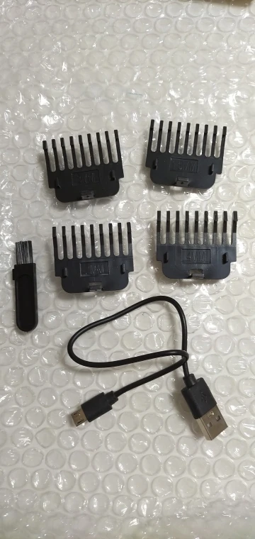 Посылка: Вы получите 1 шт. * триммер для волос, 1 шт. * кисть, 3 шт. * Концевая расческа (1 мм 2 мм 3 мм) и 1 шт. * Зарядное устройство USB