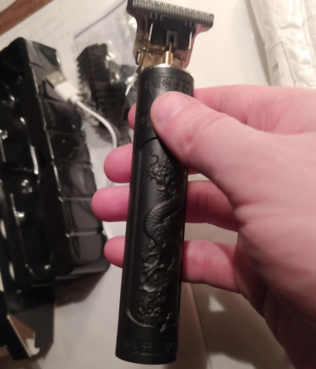 описание точное. 4 насадки 1.5;2;3;4 мм. провод для зарядки без блока питания. бреет нормально. пришла быстро