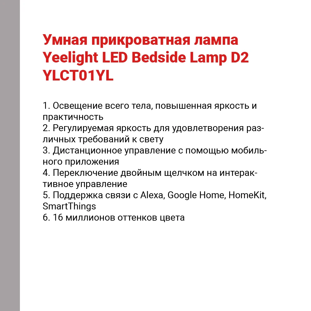 Умная прикроватная лампа Yeelight LED Bedside Lamp D2 YLCT01YL