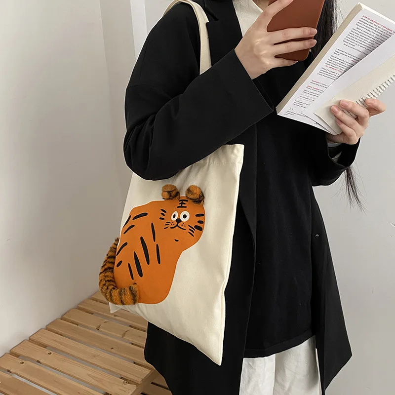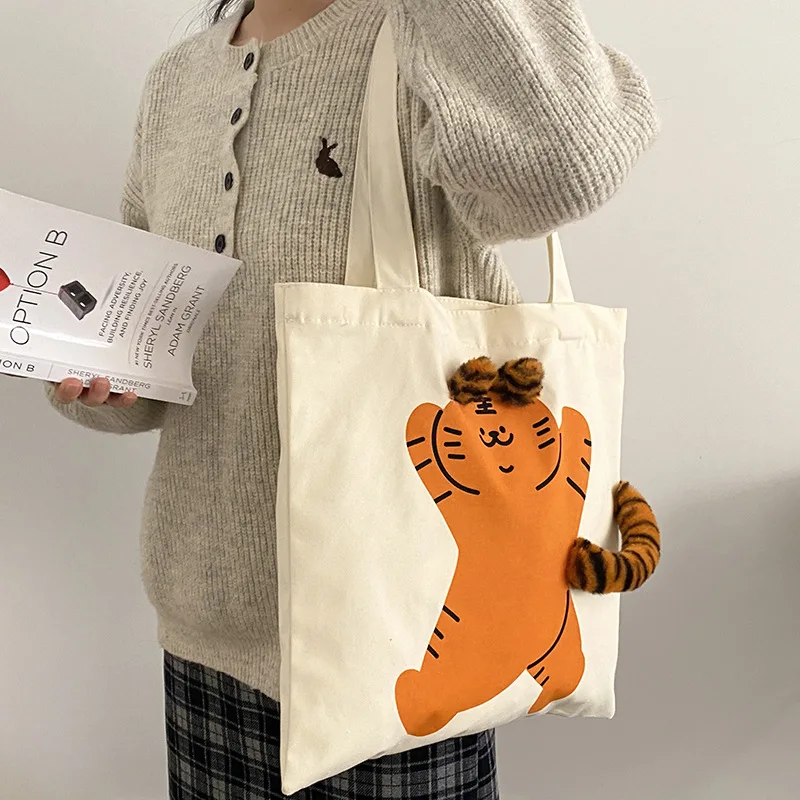 Милая мультяшная сумка на плечо с принтом тигра, женская сумка для покупок, многоразовая Новая роскошная Холщовая Сумка, женская сумка