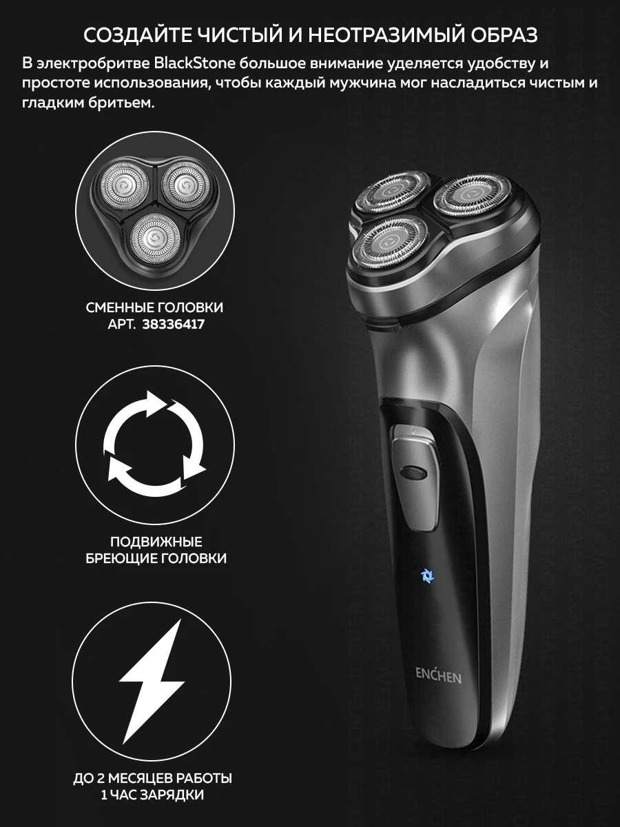 Электробритва мужская Enchen Blackstone (суббренд Xiaomi) позволит Вам ранним утром всего за 1 минуту можно привести себя в порядок и зарядиться уверенностью на весь день.