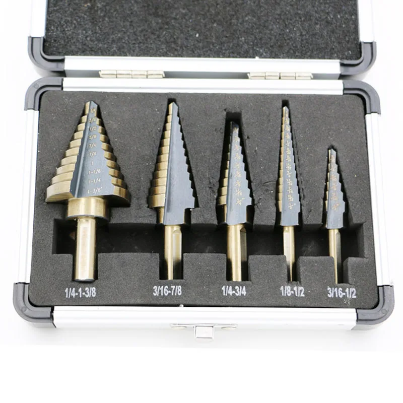 Быстрорежущая сталь, кобальт, много отверстий, 50 размеров, набор ступенчатых Сверл с алюминиевым чехлом, 5 шт./компл.