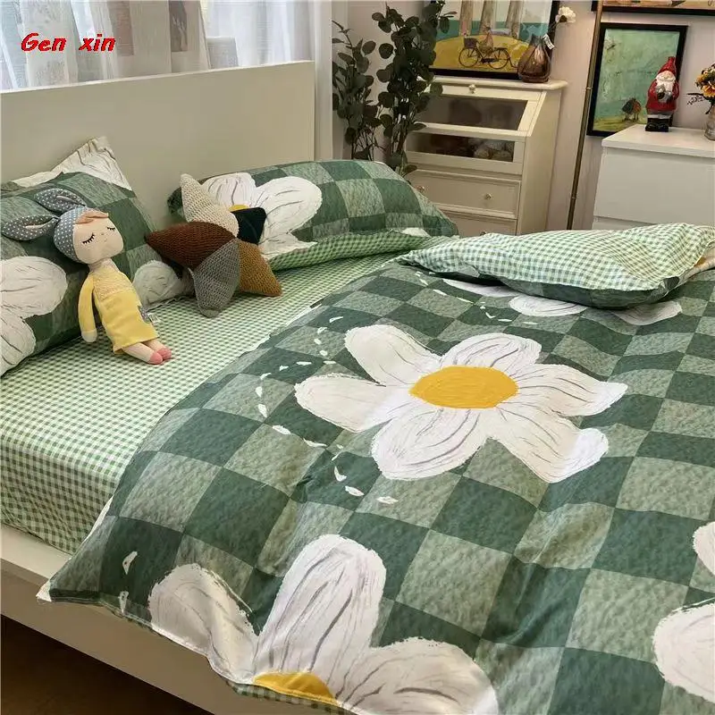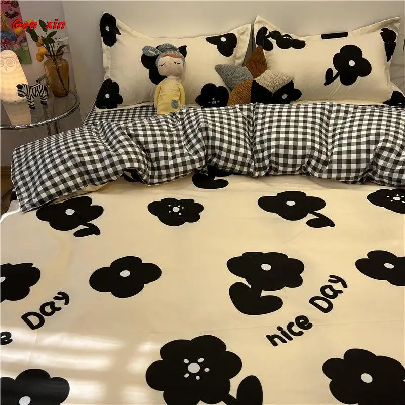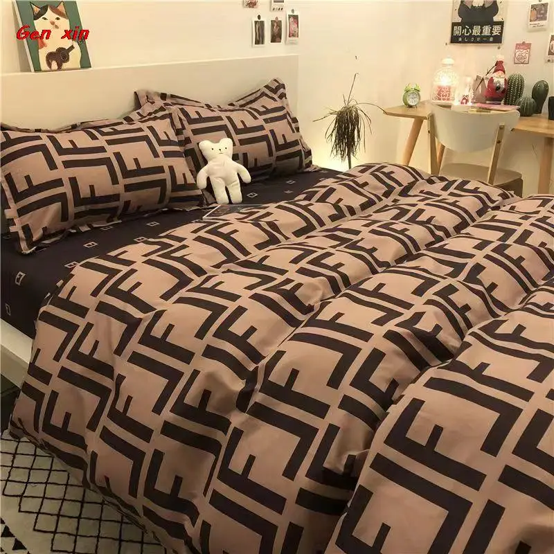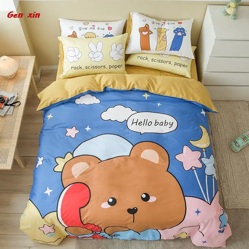 Постельное белье, Симпатичные простыни для спальни, домашний текстиль, кавайный корейский Медведь, кофейного цвета, из четырех частей, из промытого хлопка, из трех частей, для студентов