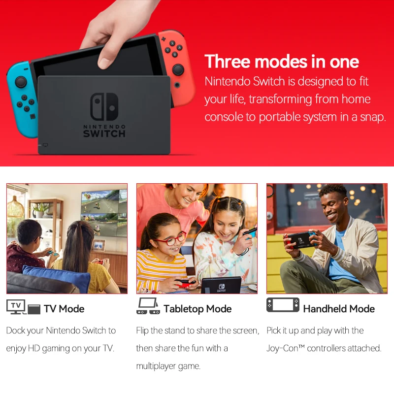 Переключатель Nintendo с 2,5-дюймовым сенсорным ЖК-дисплеем Joy Con, 32 ГБ, 6,2-9 часов работы от аккумулятора, 3 режима в 1