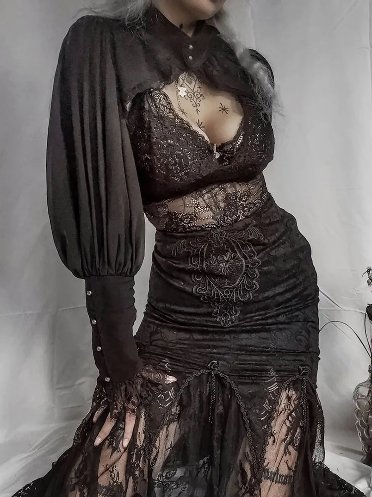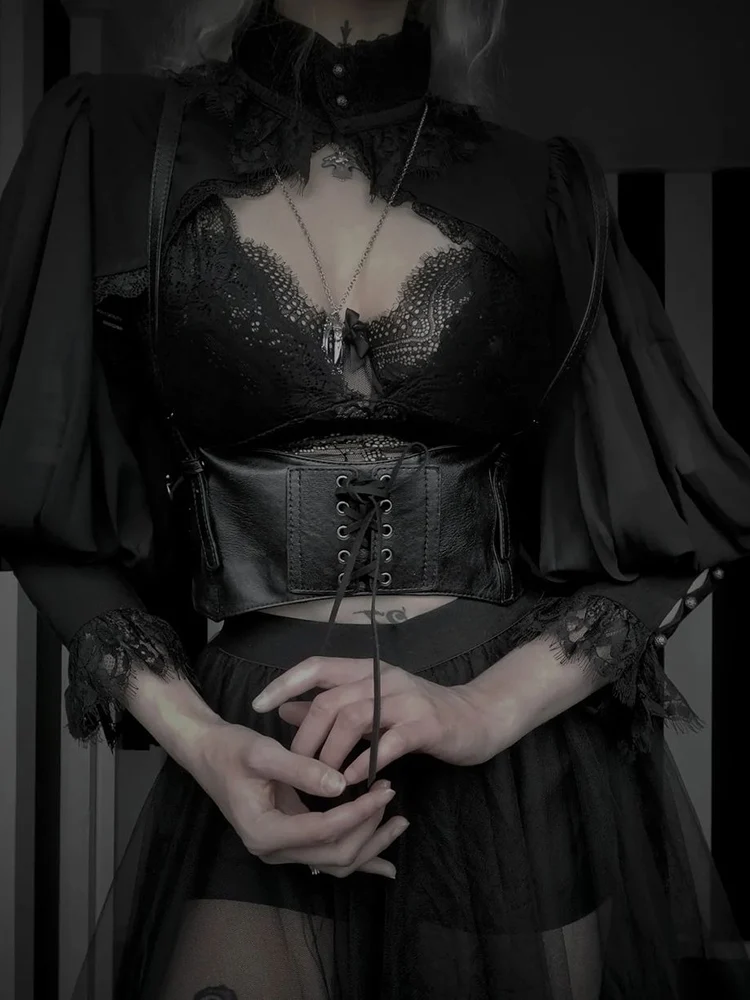 Женский Готический комбинезон InsDoit, черный укороченный Топ с длинным рукавом-фонариком, в стиле гранж, зимний, 2019