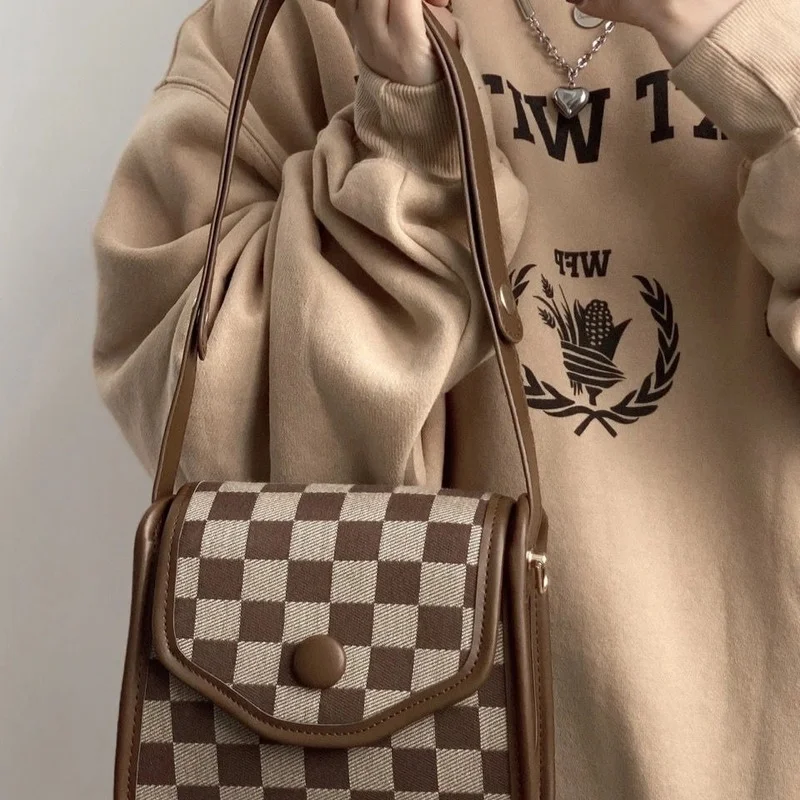 - Женская винтажная сумка на плечо Xiuya в клетку, корейская мода 2022,...