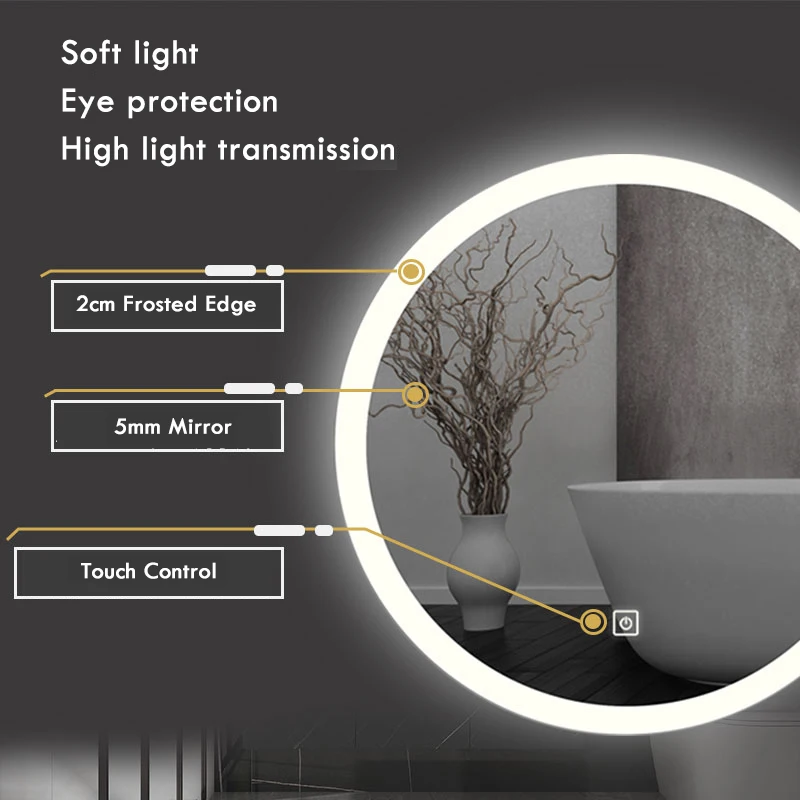 Умное круглое зеркало для макияжа, 3 дюйма, цветной Регулируемый светодиод светильник 50 см/60 см